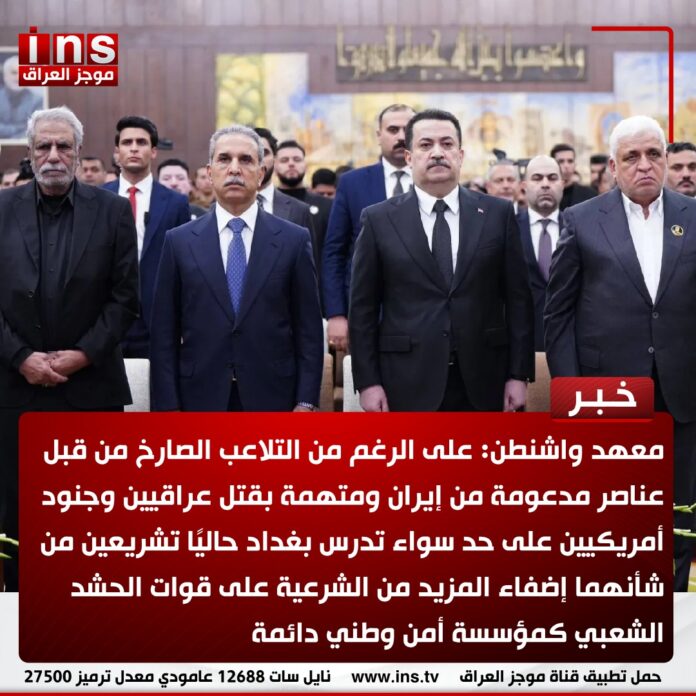 معهد واشنطن: على الرغم من التلاعب الصارخ من قبل عناصر مدعومة من إيران ومتهمة بقتل عراقيين وجنود أمريكيين على حد سواء تدرس بغداد حاليًا تشريعين من شأنهما إضفاء المزيد من الشرعية على قوات الحشد الشعبي كمؤسسة أمن وطني دائمة
