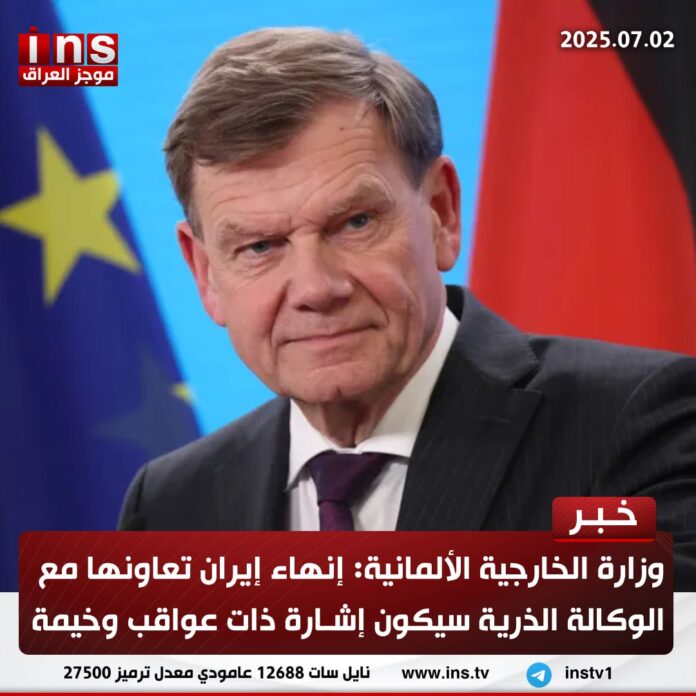 الرئيسيةالأخباروزارة الخارجية الألمانية: إنهاء إيران تعاونها مع الوكالة الذرية سيكون إشارة ذات... الأخبار وزارة الخارجية الألمانية: إنهاء إيران تعاونها مع الوكالة الذرية سيكون إشارة ذات عواقب وخيمة 0 154 يوليو 2, 2025 كتب بواسطة موجز العراق ins شارك FacebookTwitterPinterestWhatsAppTelegramViberCopy URL شارك FacebookTwitterPinterestWhatsAppTelegramViberCopy URL مقالات ذات صلة الأخبار رئيس الوزراء الإسرائيلي بنيامين نتنياهو: قرار إنهاء الحرب مع إيران كان قراراً إسرائيلياً خالصاً وهناك خطة لهجوم محتمل آخر على إيران نوفمبر 14, 2025 الأخبار رئيس جهاز الاستخبارات الأمنية الكندية دان روجرز: أحبطنا مخططات قاتلة للنظام الإيراني ووكلائه استهدفت معارضيه على أراضينا نوفمبر 14, 2025 الأخبار معهد الدراسات الأوروبية: على الرغم من أن القانون العراقي يحظر رسمياً مشاركة الجماعات المسلحة سياسياً إلا أن النظام ما يزال تهيمن عليه أحزاب الميليشيات نوفمبر 14, 2025