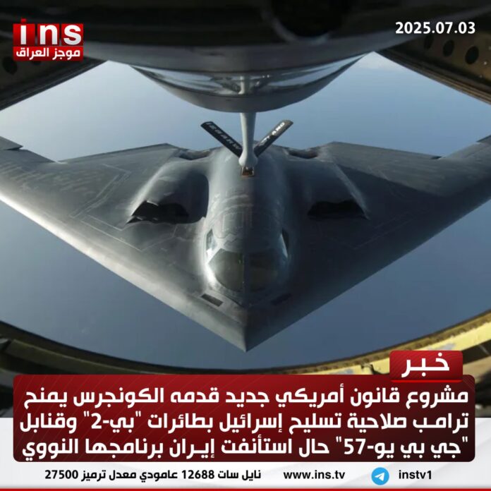 الرئيسيةالأخبارمشروع قانون أمريكي جديد قدمه الكونجرس يمنح ترامب صلاحية تسليح إسرائيل بطائرات... الأخبار مشروع قانون أمريكي جديد قدمه الكونجرس يمنح ترامب صلاحية تسليح إسرائيل بطائرات “بي-2” وقنابل “جي بي يو-57” حال استأنفت إيران برنامجها النووي 0 102 يوليو 3, 2025 كتب بواسطة موجز العراق ins شارك FacebookTwitterPinterestWhatsAppTelegramViberCopy URL شارك FacebookTwitterPinterestWhatsAppTelegramViberCopy URL مقالات ذات صلة الأخبار رئيس الوزراء الإسرائيلي بنيامين نتنياهو: قرار إنهاء الحرب مع إيران كان قراراً إسرائيلياً خالصاً وهناك خطة لهجوم محتمل آخر على إيران نوفمبر 14, 2025 الأخبار رئيس جهاز الاستخبارات الأمنية الكندية دان روجرز: أحبطنا مخططات قاتلة للنظام الإيراني ووكلائه استهدفت معارضيه على أراضينا نوفمبر 14, 2025 الأخبار معهد الدراسات الأوروبية: على الرغم من أن القانون العراقي يحظر رسمياً مشاركة الجماعات المسلحة سياسياً إلا أن النظام ما يزال تهيمن عليه أحزاب الميليشيات نوفمبر 14, 2025