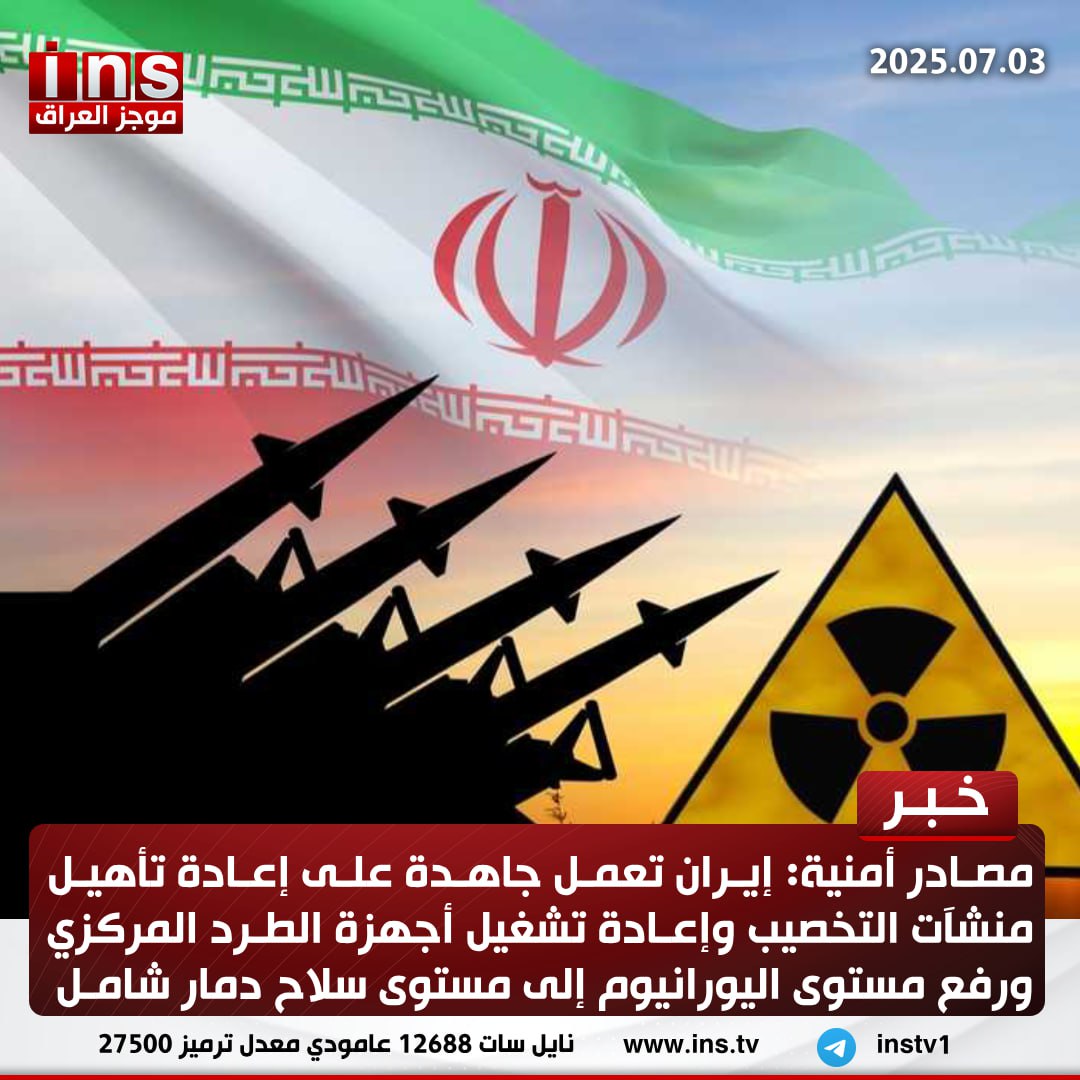 الرئيسيةالأخبارمصادر أمنية: إيران تعمل جاهدة على إعادة تأهيل منشآت التخصيب، وإعادة تشغيل... الأخبار مصادر أمنية: إيران تعمل جاهدة على إعادة تأهيل منشآت التخصيب، وإعادة تشغيل أجهزة الطرد المركزي، ورفع مستوى اليورانيوم إلى مستوى سلاح دمار شامل 0 117 يوليو 3, 2025 كتب بواسطة موجز العراق ins شارك FacebookTwitterPinterestWhatsAppTelegramViberCopy URL شارك FacebookTwitterPinterestWhatsAppTelegramViberCopy URL مقالات ذات صلة الأخبار رئيس الوزراء الإسرائيلي بنيامين نتنياهو: قرار إنهاء الحرب مع إيران كان قراراً إسرائيلياً خالصاً وهناك خطة لهجوم محتمل آخر على إيران نوفمبر 14, 2025 الأخبار رئيس جهاز الاستخبارات الأمنية الكندية دان روجرز: أحبطنا مخططات قاتلة للنظام الإيراني ووكلائه استهدفت معارضيه على أراضينا نوفمبر 14, 2025 الأخبار معهد الدراسات الأوروبية: على الرغم من أن القانون العراقي يحظر رسمياً مشاركة الجماعات المسلحة سياسياً إلا أن النظام ما يزال تهيمن عليه أحزاب الميليشيات نوفمبر 14, 2025