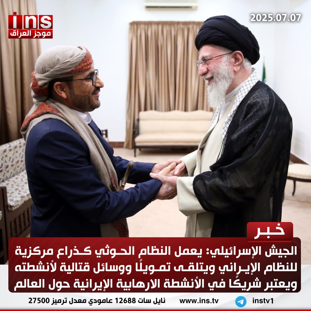 الجيش الإسرائيلي: يعمل النظام الحوثي كذراع مركزية للنظام الإيراني ويتلقى تمويلًا ووسائل قتالية لأنشطته ويعتبر شريكًا في الأنشطة الارهابية الإيرانية حول العالم
