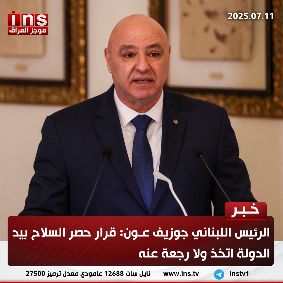 الرئيسيةالأخبارالرئيس اللبناني جوزيف عون: قرار حصر السلاح بيد الدولة اتخذ ولا رجعة... الأخبار الرئيس اللبناني جوزيف عون: قرار حصر السلاح بيد الدولة اتخذ ولا رجعة عنه 0 165 يوليو 11, 2025 كتب بواسطة موجز العراق ins شارك FacebookTwitterPinterestWhatsAppTelegramViberCopy URL شارك FacebookTwitterPinterestWhatsAppTelegramViberCopy URL مقالات ذات صلة الأخبار مسيرة إسرائيلية تستهدف سيارة في بلدة تول جنوب لبنان نوفمبر 13, 2025 الأخبار المبعوث الأميركي توم باراك: سوريا بعيد انضمامها إلى التحالف الدولي لمكافحة منظمة داعش الإرهابية سوف تسهم في مواجهة وتفكيك الشبكات الإرهابية من بقايا التنظيم... نوفمبر 13, 2025 الأخبار القيادة المركزية في الجيش الأمريكي “سنتكوم” تعلن عن مقتل واعتقال عدد من عناصر تنظيم داعش الإرهابي خلال 22 عملية مشتركة في سوريا الشهر الماضي نوفمبر 13, 2025