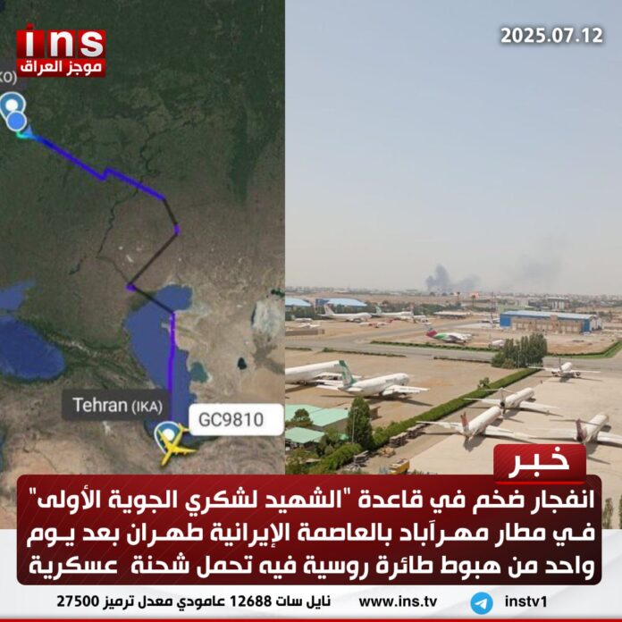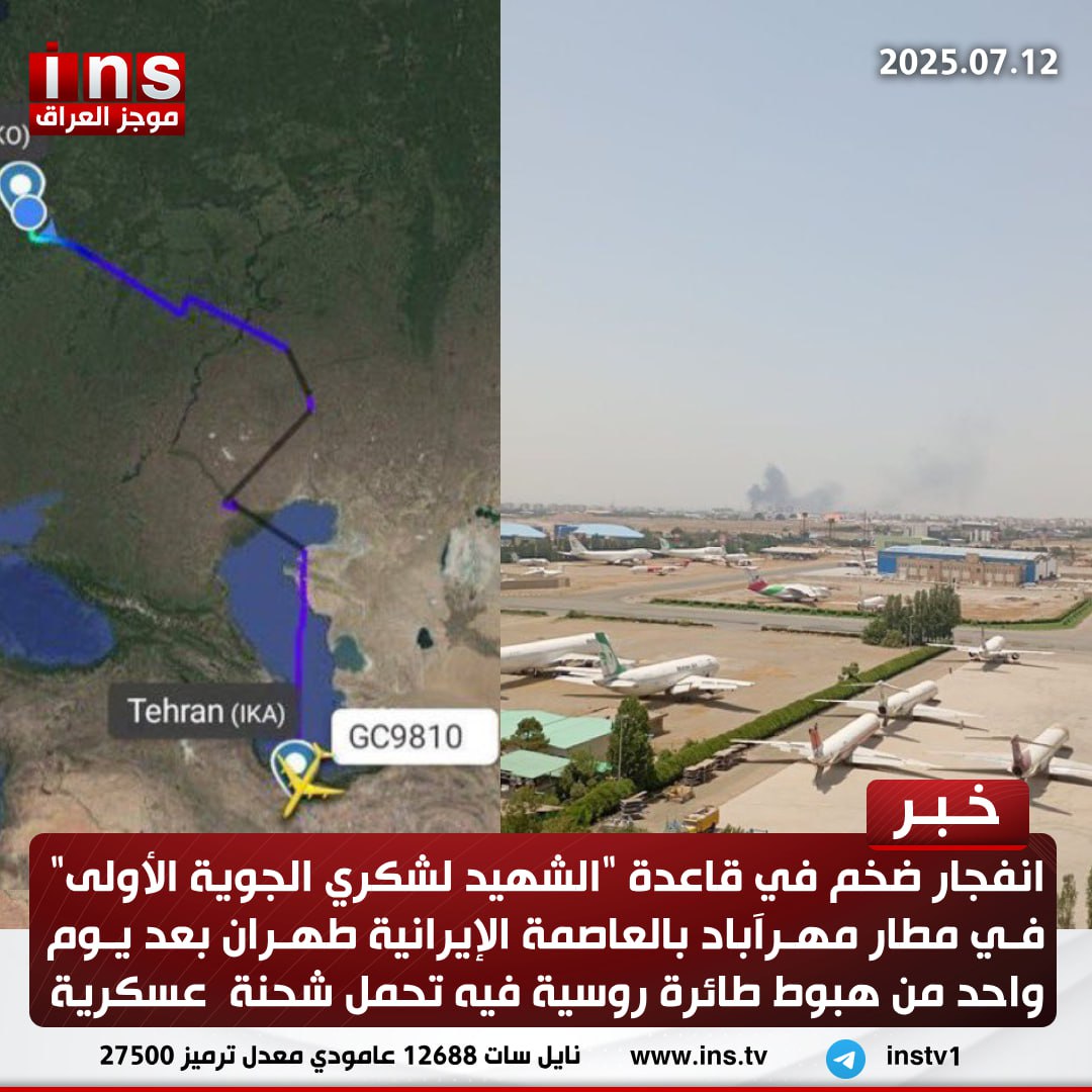 الرئيسيةالأخبارانفجار ضخم في قاعدة "الشهيد لشكري الجوية الأولى" في مطار مهرآباد بالعاصمة... الأخبار انفجار ضخم في قاعدة “الشهيد لشكري الجوية الأولى” في مطار مهرآباد بالعاصمة الإيرانية طهران بعد يوم واحد من هبوط طائرة روسية فيه تحمل شحنة عسكرية 0 146 يوليو 12, 2025 كتب بواسطة موجز العراق ins شارك FacebookTwitterPinterestWhatsAppTelegramViberCopy URL شارك FacebookTwitterPinterestWhatsAppTelegramViberCopy URL مقالات ذات صلة الأخبار مسيرة إسرائيلية تستهدف سيارة في بلدة تول جنوب لبنان نوفمبر 13, 2025 الأخبار المبعوث الأميركي توم باراك: سوريا بعيد انضمامها إلى التحالف الدولي لمكافحة منظمة داعش الإرهابية سوف تسهم في مواجهة وتفكيك الشبكات الإرهابية من بقايا التنظيم... نوفمبر 13, 2025 الأخبار القيادة المركزية في الجيش الأمريكي “سنتكوم” تعلن عن مقتل واعتقال عدد من عناصر تنظيم داعش الإرهابي خلال 22 عملية مشتركة في سوريا الشهر الماضي نوفمبر 13, 2025