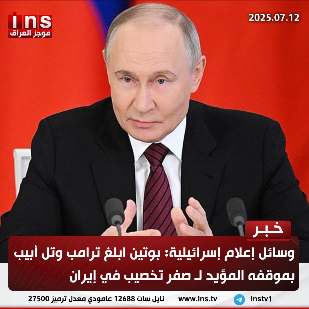 الرئيسيةالأخباروسائل إعلام إسرائيلية: بوتين ابلغ ترامب وتل أبيب بموقفه المؤيد لـ صفر... الأخبار وسائل إعلام إسرائيلية: بوتين ابلغ ترامب وتل أبيب بموقفه المؤيد لـ صفر تخصيب في إيران 0 92 يوليو 12, 2025 كتب بواسطة موجز العراق ins شارك FacebookTwitterPinterestWhatsAppTelegramViberCopy URL شارك FacebookTwitterPinterestWhatsAppTelegramViberCopy URL مقالات ذات صلة الأخبار مسيرة إسرائيلية تستهدف سيارة في بلدة تول جنوب لبنان نوفمبر 13, 2025 الأخبار المبعوث الأميركي توم باراك: سوريا بعيد انضمامها إلى التحالف الدولي لمكافحة منظمة داعش الإرهابية سوف تسهم في مواجهة وتفكيك الشبكات الإرهابية من بقايا التنظيم... نوفمبر 13, 2025 الأخبار القيادة المركزية في الجيش الأمريكي “سنتكوم” تعلن عن مقتل واعتقال عدد من عناصر تنظيم داعش الإرهابي خلال 22 عملية مشتركة في سوريا الشهر الماضي نوفمبر 13, 2025