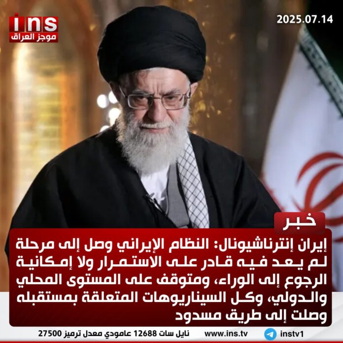 إيران إنترناشيونال: النظام الإيراني وصل إلى مرحلة لم يعد فيه قادر على الاستمرار ولا إمكانية الرجوع إلى الوراء، ومتوقف على المستوى المحلي والدولي، وكل السيناريوهات المتعلقة بمستقبله وصلت إلى طريق مسدود
