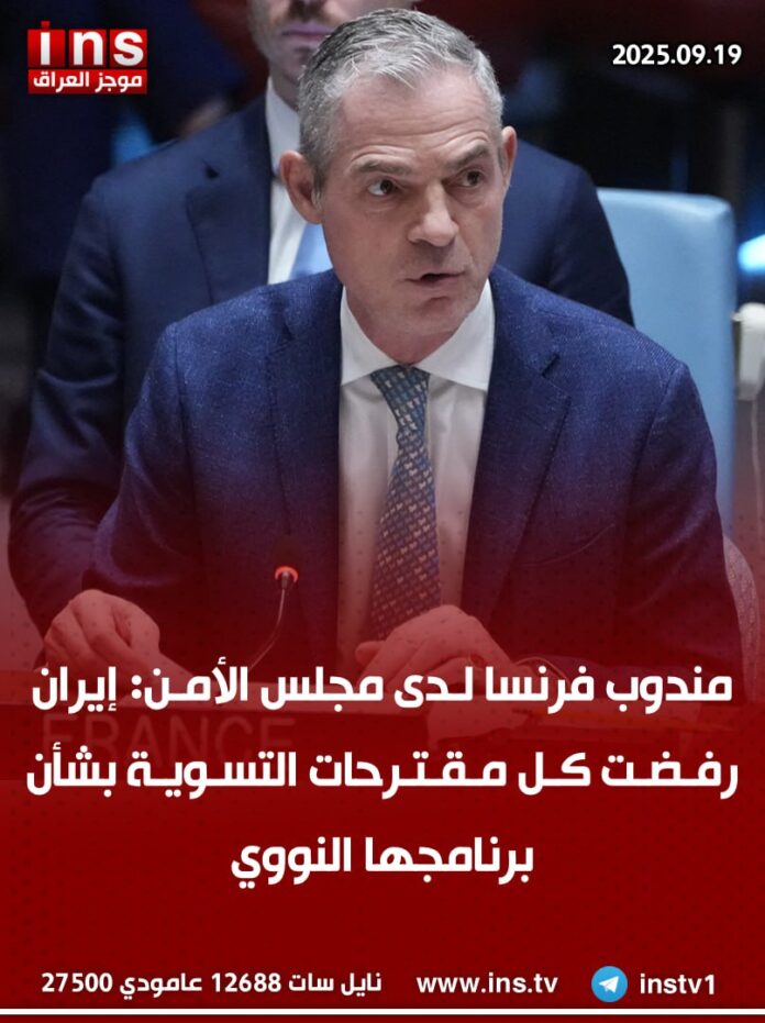 الرئيسيةالأخبارمندوب فرنسا لدى مجلس الأمن: إيران رفضت كل مقترحات التسوية بشأن برنامجها... الأخبار مندوب فرنسا لدى مجلس الأمن: إيران رفضت كل مقترحات التسوية بشأن برنامجها النووي 0 55 سبتمبر 19, 2025 كتب بواسطة موجز العراق ins شارك FacebookTwitterPinterestWhatsAppTelegramViberCopy URL شارك FacebookTwitterPinterestWhatsAppTelegramViberCopy URL مقالات ذات صلة الأخبار الدكتور اسماعيل مصبح الوائلي: المخطط الذي أعده محمد شياع السوداني مع مدير مكتبه إحسان العوادي وربيع نادر وبعض اذرعة السوداني في جهاز المخابرات العراقي... نوفمبر 8, 2025 الأخبار الدكتور اسماعيل مصبح الوائلي: المخابرات الاردنية تحبط مخطط السوداني لاغتيال مقتدى الصدر نوفمبر 8, 2025 الأخبار الدكتور اسماعيل مصبح الوائلي يكشف عن احباط مؤامرة لرئيس الوزراء العراقي محمد شياع السوداني لاغتيال السيد مقتدى الصدر نوفمبر 8, 2025