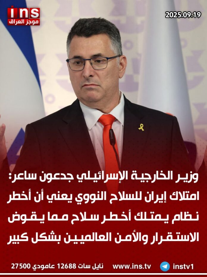 الرئيسيةالأخباروزير الخارجية الإسرائيلي جدعون ساعر: امتلاك إيران للسلاح النووي يعني أن أخطر... الأخبار وزير الخارجية الإسرائيلي جدعون ساعر: امتلاك إيران للسلاح النووي يعني أن أخطر نظام يمتلك أخطر سلاح مما يقوض الاستقرار والأمن العالميين بشكل كبير 0 64 سبتمبر 19, 2025 كتب بواسطة موجز العراق ins شارك FacebookTwitterPinterestWhatsAppTelegramViberCopy URL شارك FacebookTwitterPinterestWhatsAppTelegramViberCopy URL مقالات ذات صلة الأخبار الدكتور اسماعيل مصبح الوائلي: المخطط الذي أعده محمد شياع السوداني مع مدير مكتبه إحسان العوادي وربيع نادر وبعض اذرعة السوداني في جهاز المخابرات العراقي... نوفمبر 8, 2025 الأخبار الدكتور اسماعيل مصبح الوائلي: المخابرات الاردنية تحبط مخطط السوداني لاغتيال مقتدى الصدر نوفمبر 8, 2025 الأخبار الدكتور اسماعيل مصبح الوائلي يكشف عن احباط مؤامرة لرئيس الوزراء العراقي محمد شياع السوداني لاغتيال السيد مقتدى الصدر نوفمبر 8, 2025