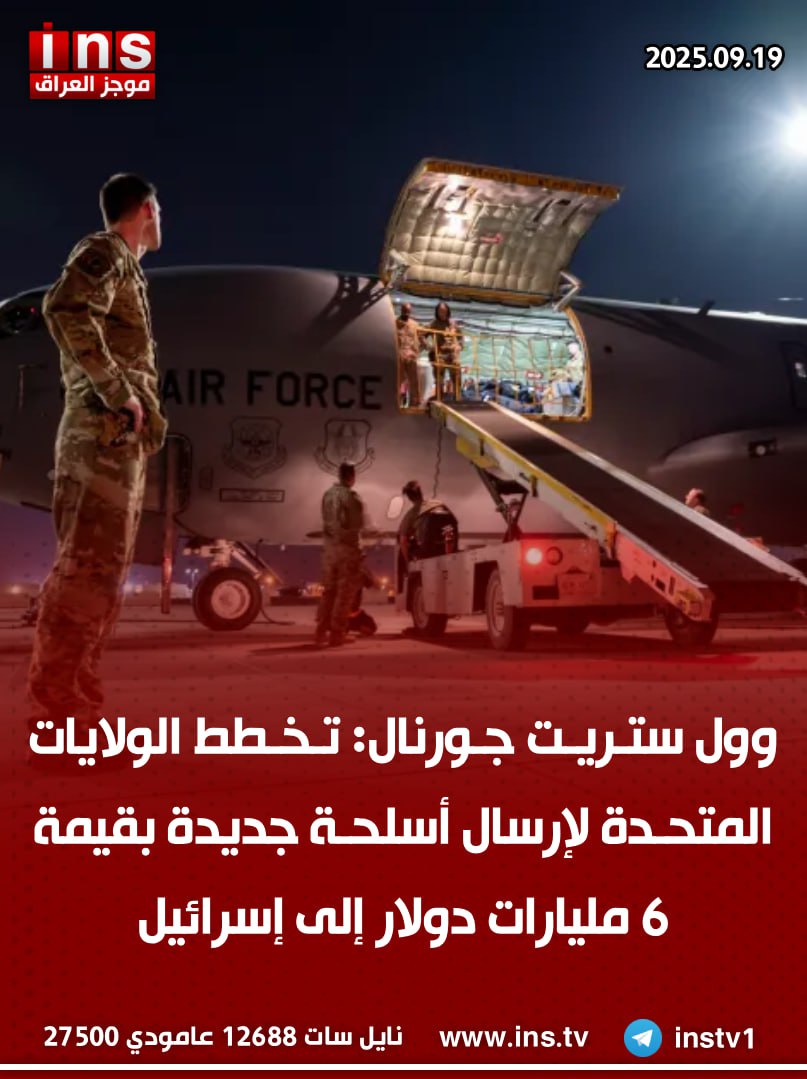 الرئيسيةالأخباروول ستريت جورنال: تخطط الولايات المتحدة لإرسال أسلحة جديدة بقيمة 6 مليارات... الأخبار وول ستريت جورنال: تخطط الولايات المتحدة لإرسال أسلحة جديدة بقيمة 6 مليارات دولار إلى إسرائيل 0 41 سبتمبر 19, 2025 كتب بواسطة موجز العراق ins شارك FacebookTwitterPinterestWhatsAppTelegramViberCopy URL شارك FacebookTwitterPinterestWhatsAppTelegramViberCopy URL مقالات ذات صلة الأخبار الدكتور اسماعيل مصبح الوائلي: المخطط الذي أعده محمد شياع السوداني مع مدير مكتبه إحسان العوادي وربيع نادر وبعض اذرعة السوداني في جهاز المخابرات العراقي... نوفمبر 8, 2025 الأخبار الدكتور اسماعيل مصبح الوائلي: المخابرات الاردنية تحبط مخطط السوداني لاغتيال مقتدى الصدر نوفمبر 8, 2025 الأخبار الدكتور اسماعيل مصبح الوائلي يكشف عن احباط مؤامرة لرئيس الوزراء العراقي محمد شياع السوداني لاغتيال السيد مقتدى الصدر نوفمبر 8, 2025