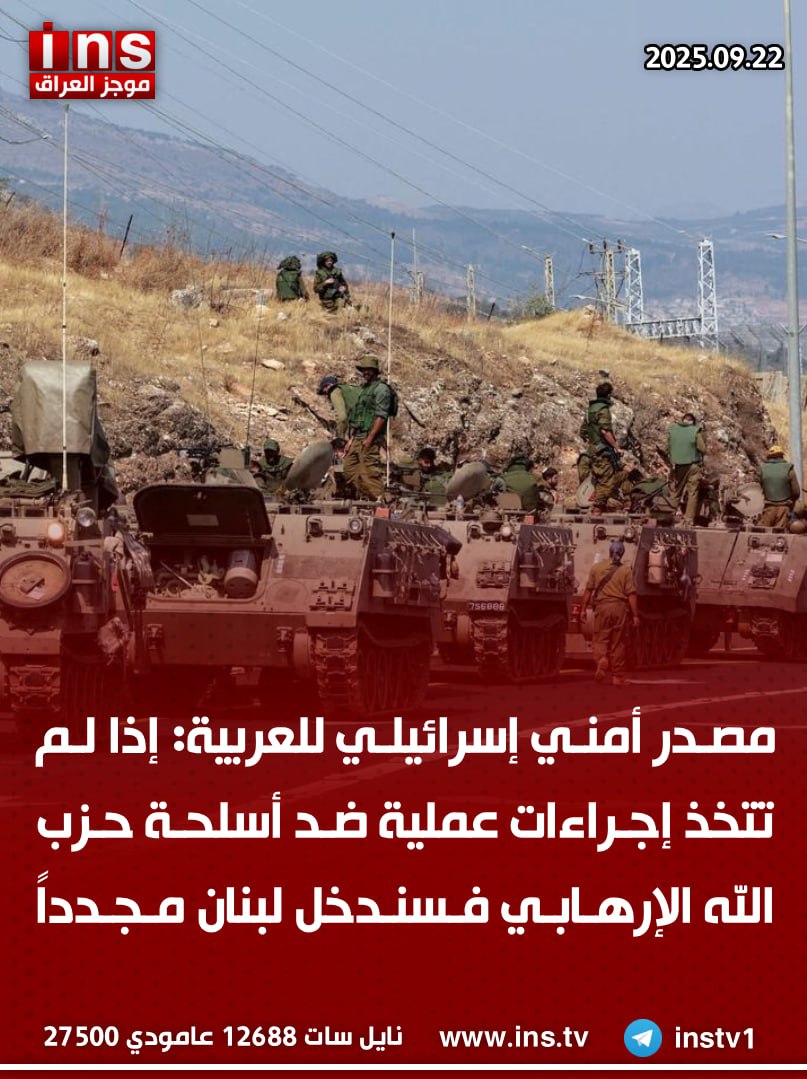 الرئيسيةالأخبارمصدر أمني إسرائيلي للعربية: إذا لم تتخذ إجراءات عملية ضد أسلحة حزب... الأخبار مصدر أمني إسرائيلي للعربية: إذا لم تتخذ إجراءات عملية ضد أسلحة حزب الله الإرهابي فسندخل لبنان مجدداً 0 84 سبتمبر 22, 2025 كتب بواسطة موجز العراق ins شارك FacebookTwitterPinterestWhatsAppTelegramViberCopy URL شارك FacebookTwitterPinterestWhatsAppTelegramViberCopy URL مقالات ذات صلة الأخبار الدكتور اسماعيل مصبح الوائلي: المخطط الذي أعده محمد شياع السوداني مع مدير مكتبه إحسان العوادي وربيع نادر وبعض اذرعة السوداني في جهاز المخابرات العراقي... نوفمبر 8, 2025 الأخبار الدكتور اسماعيل مصبح الوائلي: المخابرات الاردنية تحبط مخطط السوداني لاغتيال مقتدى الصدر نوفمبر 8, 2025 الأخبار الدكتور اسماعيل مصبح الوائلي يكشف عن احباط مؤامرة لرئيس الوزراء العراقي محمد شياع السوداني لاغتيال السيد مقتدى الصدر نوفمبر 8, 2025
