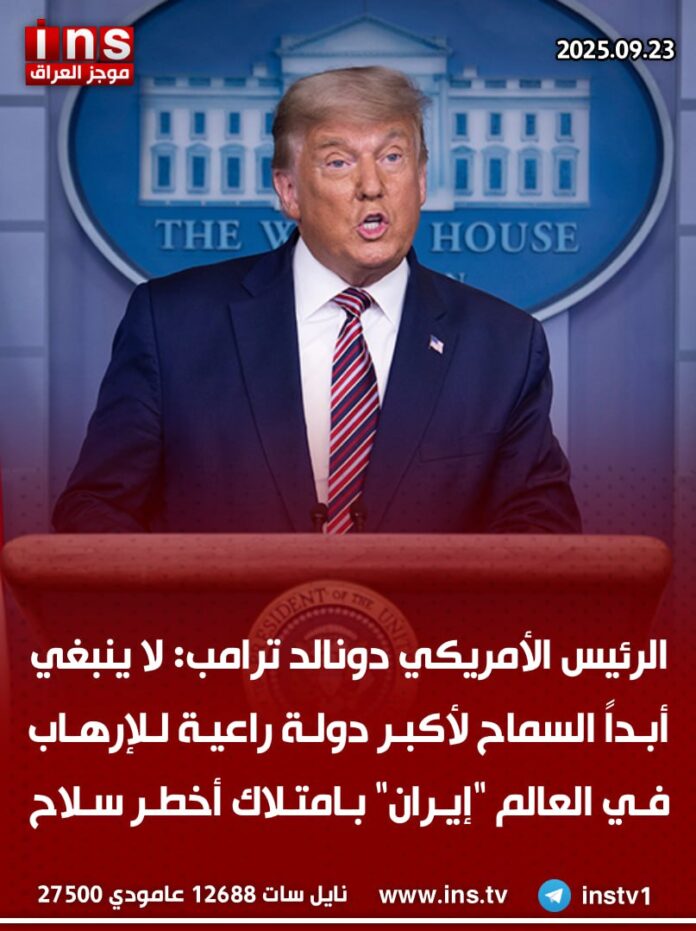 الرئيسيةالأخبارالرئيس الأمريكي دونالد ترامب: لا ينبغي أبداً السماح لأكبر دولة راعية للإرهاب... الأخبار الرئيس الأمريكي دونالد ترامب: لا ينبغي أبداً السماح لأكبر دولة راعية للإرهاب في العالم “إيران” بامتلاك أخطر سلاح 0 73 سبتمبر 23, 2025 كتب بواسطة موجز العراق ins شارك FacebookTwitterPinterestWhatsAppTelegramViberCopy URL شارك FacebookTwitterPinterestWhatsAppTelegramViberCopy URL مقالات ذات صلة الأخبار الدكتور اسماعيل مصبح الوائلي: المخطط الذي أعده محمد شياع السوداني مع مدير مكتبه إحسان العوادي وربيع نادر وبعض اذرعة السوداني في جهاز المخابرات العراقي... نوفمبر 8, 2025 الأخبار الدكتور اسماعيل مصبح الوائلي: المخابرات الاردنية تحبط مخطط السوداني لاغتيال مقتدى الصدر نوفمبر 8, 2025 الأخبار الدكتور اسماعيل مصبح الوائلي يكشف عن احباط مؤامرة لرئيس الوزراء العراقي محمد شياع السوداني لاغتيال السيد مقتدى الصدر نوفمبر 8, 2025