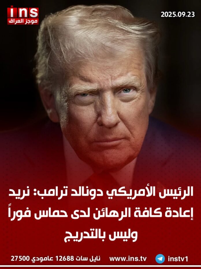 الرئيسيةالأخبارالرئيس الأمريكي دونالد ترامب: نريد إعادة كافة الرهائن لدى حماس فوراً وليس... الأخبار الرئيس الأمريكي دونالد ترامب: نريد إعادة كافة الرهائن لدى حماس فوراً وليس بالتدريج 0 82 سبتمبر 23, 2025 كتب بواسطة موجز العراق ins شارك FacebookTwitterPinterestWhatsAppTelegramViberCopy URL شارك FacebookTwitterPinterestWhatsAppTelegramViberCopy URL مقالات ذات صلة الأخبار الدكتور اسماعيل مصبح الوائلي: المخطط الذي أعده محمد شياع السوداني مع مدير مكتبه إحسان العوادي وربيع نادر وبعض اذرعة السوداني في جهاز المخابرات العراقي... نوفمبر 8, 2025 الأخبار الدكتور اسماعيل مصبح الوائلي: المخابرات الاردنية تحبط مخطط السوداني لاغتيال مقتدى الصدر نوفمبر 8, 2025 الأخبار الدكتور اسماعيل مصبح الوائلي يكشف عن احباط مؤامرة لرئيس الوزراء العراقي محمد شياع السوداني لاغتيال السيد مقتدى الصدر نوفمبر 8, 2025