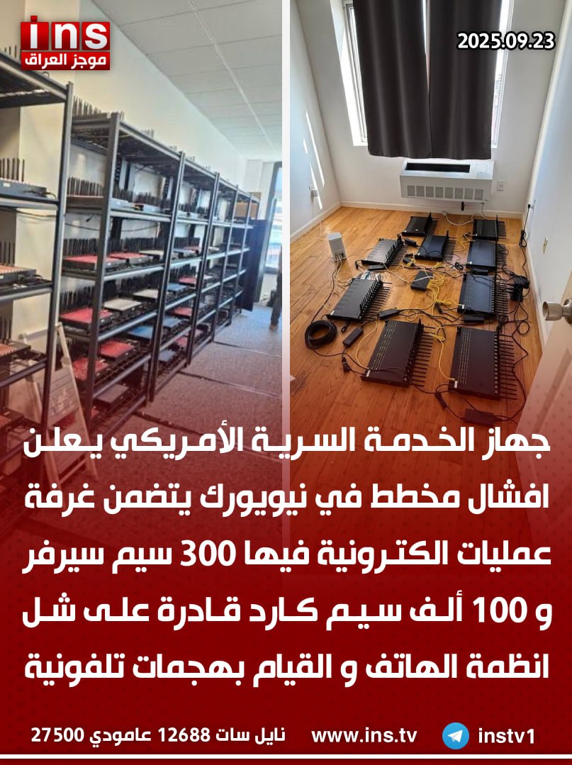 جهاز الخدمة السرية الأمريكي يعلن افشال مخطط في نيويورك يتضمن غرفة عمليات الكترونية فيها 300 سيم سيرفر و 100 ألف سيم كارد قادرة على شل انظمة الهاتف و القيام بهجمات تلفونية