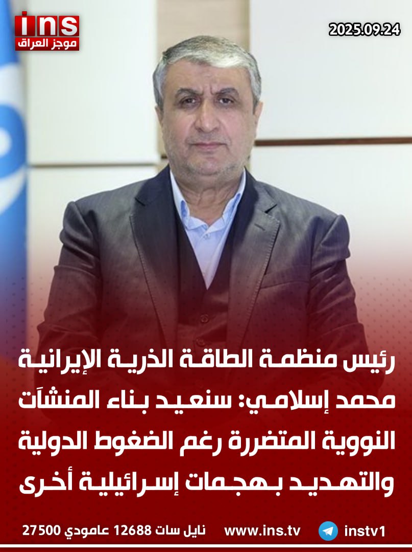الرئيسيةالأخباررئيس منظمة الطاقة الذرية الإيرانية محمد إسلامي: سنعيد بناء المنشآت النووية المتضررة... الأخبار رئيس منظمة الطاقة الذرية الإيرانية محمد إسلامي: سنعيد بناء المنشآت النووية المتضررة رغم الضغوط الدولية والتهديد بهجمات إسرائيلية أخرى 0 84 سبتمبر 24, 2025 كتب بواسطة موجز العراق ins شارك FacebookTwitterPinterestWhatsAppTelegramViberCopy URL شارك FacebookTwitterPinterestWhatsAppTelegramViberCopy URL مقالات ذات صلة الأخبار الدكتور اسماعيل مصبح الوائلي: المخطط الذي أعده محمد شياع السوداني مع مدير مكتبه إحسان العوادي وربيع نادر وبعض اذرعة السوداني في جهاز المخابرات العراقي... نوفمبر 8, 2025 الأخبار الدكتور اسماعيل مصبح الوائلي: المخابرات الاردنية تحبط مخطط السوداني لاغتيال مقتدى الصدر نوفمبر 8, 2025 الأخبار الدكتور اسماعيل مصبح الوائلي يكشف عن احباط مؤامرة لرئيس الوزراء العراقي محمد شياع السوداني لاغتيال السيد مقتدى الصدر نوفمبر 8, 2025