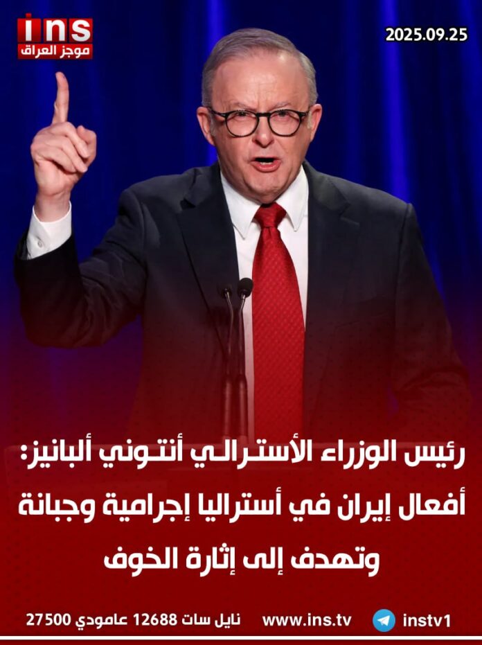 الرئيسيةالأخباررئيس الوزراء الأسترالي أنتوني ألبانيز: أفعال إيران في أستراليا إجرامية وجبانة وتهدف... الأخبار رئيس الوزراء الأسترالي أنتوني ألبانيز: أفعال إيران في أستراليا إجرامية وجبانة وتهدف إلى إثارة الخوف 0 64 سبتمبر 25, 2025 كتب بواسطة موجز العراق ins شارك FacebookTwitterPinterestWhatsAppTelegramViberCopy URL شارك FacebookTwitterPinterestWhatsAppTelegramViberCopy URL مقالات ذات صلة الأخبار الدكتور اسماعيل مصبح الوائلي: المخطط الذي أعده محمد شياع السوداني مع مدير مكتبه إحسان العوادي وربيع نادر وبعض اذرعة السوداني في جهاز المخابرات العراقي... نوفمبر 8, 2025 الأخبار الدكتور اسماعيل مصبح الوائلي: المخابرات الاردنية تحبط مخطط السوداني لاغتيال مقتدى الصدر نوفمبر 8, 2025 الأخبار الدكتور اسماعيل مصبح الوائلي يكشف عن احباط مؤامرة لرئيس الوزراء العراقي محمد شياع السوداني لاغتيال السيد مقتدى الصدر نوفمبر 8, 2025