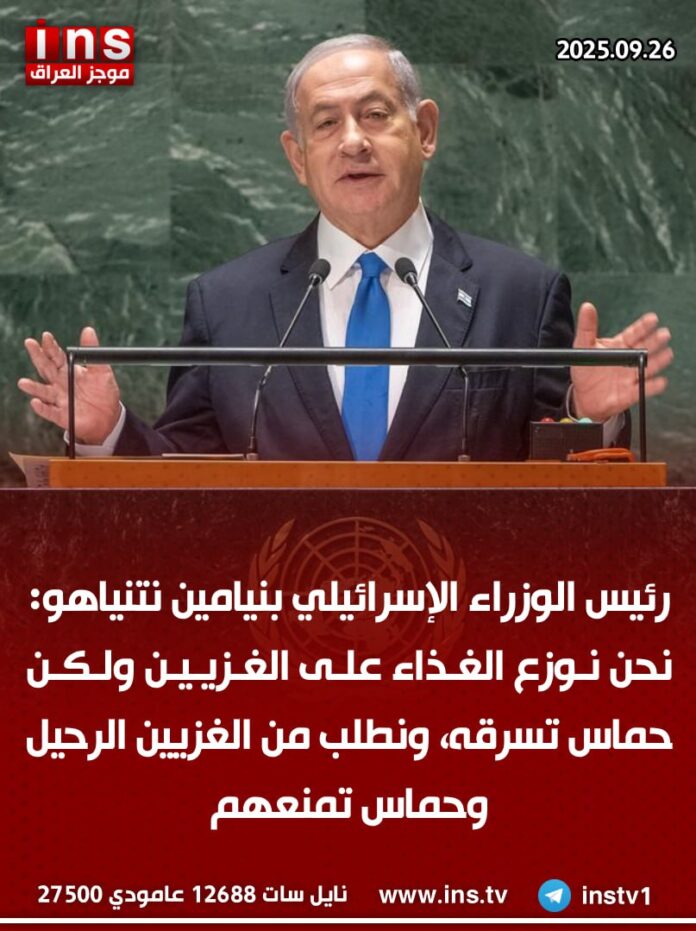الرئيسيةالأخباررئيس الوزراء الإسرائيلي بنيامين نتنياهو: نحن نوزع الغذاء على الغزيين ولكن حماس... الأخبار رئيس الوزراء الإسرائيلي بنيامين نتنياهو: نحن نوزع الغذاء على الغزيين ولكن حماس تسرقه، ونطلب من الغزيين الرحيل وحماس تمنعهم 0 63 سبتمبر 26, 2025 كتب بواسطة موجز العراق ins شارك FacebookTwitterPinterestWhatsAppTelegramViberCopy URL شارك FacebookTwitterPinterestWhatsAppTelegramViberCopy URL مقالات ذات صلة الأخبار الدكتور اسماعيل مصبح الوائلي: المخطط الذي أعده محمد شياع السوداني مع مدير مكتبه إحسان العوادي وربيع نادر وبعض اذرعة السوداني في جهاز المخابرات العراقي... نوفمبر 8, 2025 الأخبار الدكتور اسماعيل مصبح الوائلي: المخابرات الاردنية تحبط مخطط السوداني لاغتيال مقتدى الصدر نوفمبر 8, 2025 الأخبار الدكتور اسماعيل مصبح الوائلي يكشف عن احباط مؤامرة لرئيس الوزراء العراقي محمد شياع السوداني لاغتيال السيد مقتدى الصدر نوفمبر 8, 2025