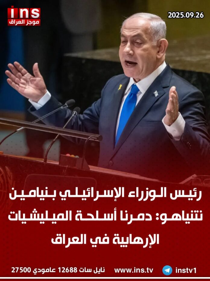 الرئيسيةالأخباررئيس الوزراء الإسرائيلي بنيامين نتنياهو: دمرنا أسلحة الميليشيات الإرهابية في العراق الأخبار رئيس الوزراء الإسرائيلي بنيامين نتنياهو: دمرنا أسلحة الميليشيات الإرهابية في العراق 0 32 سبتمبر 26, 2025 كتب بواسطة موجز العراق ins شارك FacebookTwitterPinterestWhatsAppTelegramViberCopy URL شارك FacebookTwitterPinterestWhatsAppTelegramViberCopy URL مقالات ذات صلة الأخبار الدكتور اسماعيل مصبح الوائلي: المخطط الذي أعده محمد شياع السوداني مع مدير مكتبه إحسان العوادي وربيع نادر وبعض اذرعة السوداني في جهاز المخابرات العراقي... نوفمبر 8, 2025 الأخبار الدكتور اسماعيل مصبح الوائلي: المخابرات الاردنية تحبط مخطط السوداني لاغتيال مقتدى الصدر نوفمبر 8, 2025 الأخبار الدكتور اسماعيل مصبح الوائلي يكشف عن احباط مؤامرة لرئيس الوزراء العراقي محمد شياع السوداني لاغتيال السيد مقتدى الصدر نوفمبر 8, 2025