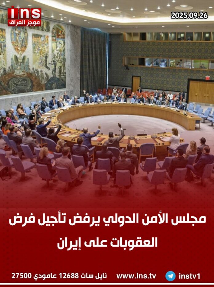 الرئيسيةالأخبارمجلس الأمن الدولي يرفض تأجيل فرض العقوبات على إيران الأخبار مجلس الأمن الدولي يرفض تأجيل فرض العقوبات على إيران 0 55 سبتمبر 26, 2025 كتب بواسطة موجز العراق ins شارك FacebookTwitterPinterestWhatsAppTelegramViberCopy URL شارك FacebookTwitterPinterestWhatsAppTelegramViberCopy URL مقالات ذات صلة الأخبار أجهزة الاستخبارات النمساوية تكتشف مستودع أسلحة في فيينا يشتبه في ارتباطه بحركة حماس الإرهابية كان معداً لشن هجمات إرهابية محتملة في أوروبا نوفمبر 7, 2025 الأخبار إيران تعلن عن اختبار صاروخ باليستي جديد عابر للقارات بمدى 10 آلاف كيلومتر قادر على ضرب الأراضي الأمريكية نوفمبر 7, 2025 الأخبار السفارة الأمريكية في بيروت: واشنطن ستستخدم كل الوسائل لمنع حزب الله من تهديد لبنان والمنطقة نوفمبر 7, 2025