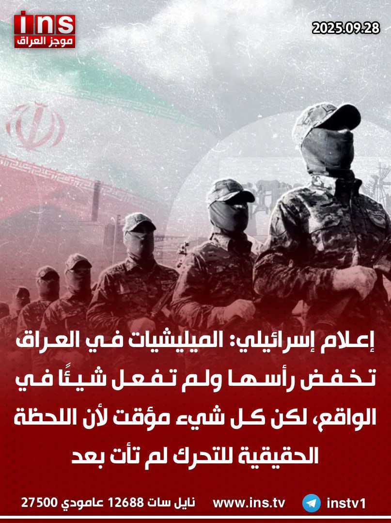 الرئيسيةالأخبارإعلام إسرائيلي: الميليشيات في العراق تخفض رأسها ولم تفعل شيئًا في الواقع،... الأخبار إعلام إسرائيلي: الميليشيات في العراق تخفض رأسها ولم تفعل شيئًا في الواقع، لكن كل شيء مؤقت لأن اللحظة الحقيقية للتحرك لم تأت بعد 0 58 سبتمبر 28, 2025 كتب بواسطة موجز العراق ins شارك FacebookTwitterPinterestWhatsAppTelegramViberCopy URL شارك FacebookTwitterPinterestWhatsAppTelegramViberCopy URL مقالات ذات صلة الأخبار الجيش الإسرائيلي: منظمة حزب الله الإرهابية تستخدم سكان لبنان دروعاً بشرية لأنشطتها نوفمبر 6, 2025 الأخبار الجيش الإسرائيلي: منظمة حزب الله الإرهابية وضع مستودعات الأسلحة بين السكان المدنيين جنوب لبنان نوفمبر 6, 2025 الأخبار هيئة البث الإسرائيلية عن قادة في الجيش: موجة الغارات الأخيرة تهدف إلى تمكين إسرائيل من تحقيق هدفها بنزع سلاح منظمة حزب الله الإرهابية نوفمبر 6, 2025