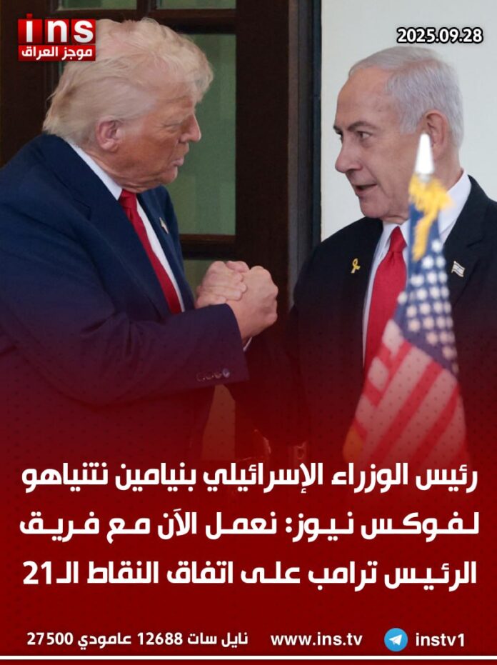 الرئيسيةالأخباررئيس الوزراء الإسرائيلي بنيامين نتنياهو لفوكس نيوز: نعمل الآن مع فريق الرئيس... الأخبار رئيس الوزراء الإسرائيلي بنيامين نتنياهو لفوكس نيوز: نعمل الآن مع فريق الرئيس ترامب على اتفاق النقاط الـ21 0 32 سبتمبر 28, 2025 كتب بواسطة موجز العراق ins شارك FacebookTwitterPinterestWhatsAppTelegramViberCopy URL شارك FacebookTwitterPinterestWhatsAppTelegramViberCopy URL مقالات ذات صلة الأخبار المدير العام للوكالة الدولية للطاقة الذرية رافائيل غروسي: إيران لا تزال تمتلك القدرة على صنع السلاح النووي في المستقبل القريب نوفمبر 7, 2025 الأخبار الجيش الإسرائيلي: منظمة حزب الله الإرهابية تستخدم سكان لبنان دروعاً بشرية لأنشطتها نوفمبر 6, 2025 الأخبار الجيش الإسرائيلي: منظمة حزب الله الإرهابية وضع مستودعات الأسلحة بين السكان المدنيين جنوب لبنان نوفمبر 6, 2025