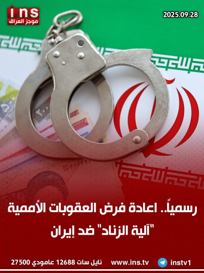 الرئيسيةالأخباررسمياً.. اعادة فرض العقوبات الأممية "آلية الزناد" ضد إيران الأخبار رسمياً.. اعادة فرض العقوبات الأممية “آلية الزناد” ضد إيران 0 55 سبتمبر 28, 2025 كتب بواسطة موجز العراق ins شارك FacebookTwitterPinterestWhatsAppTelegramViberCopy URL شارك FacebookTwitterPinterestWhatsAppTelegramViberCopy URL مقالات ذات صلة الأخبار أجهزة الاستخبارات النمساوية تكتشف مستودع أسلحة في فيينا يشتبه في ارتباطه بحركة حماس الإرهابية كان معداً لشن هجمات إرهابية محتملة في أوروبا نوفمبر 7, 2025 الأخبار إيران تعلن عن اختبار صاروخ باليستي جديد عابر للقارات بمدى 10 آلاف كيلومتر قادر على ضرب الأراضي الأمريكية نوفمبر 7, 2025 الأخبار السفارة الأمريكية في بيروت: واشنطن ستستخدم كل الوسائل لمنع حزب الله من تهديد لبنان والمنطقة نوفمبر 7, 2025