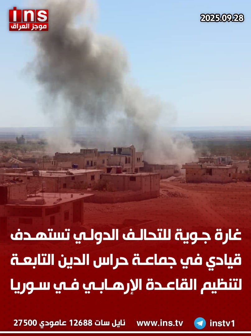 الرئيسيةالأخبارغارة جوية للتحالف الدولي تستهدف قيادي في جماعة حراس الدين التابعة لتنظيم... الأخبار غارة جوية للتحالف الدولي تستهدف قيادي في جماعة حراس الدين التابعة لتنظيم القاعدة الإرهابي في سوريا 0 60 سبتمبر 28, 2025 كتب بواسطة موجز العراق ins شارك FacebookTwitterPinterestWhatsAppTelegramViberCopy URL شارك FacebookTwitterPinterestWhatsAppTelegramViberCopy URL مقالات ذات صلة الأخبار أجهزة الاستخبارات النمساوية تكتشف مستودع أسلحة في فيينا يشتبه في ارتباطه بحركة حماس الإرهابية كان معداً لشن هجمات إرهابية محتملة في أوروبا نوفمبر 7, 2025 الأخبار إيران تعلن عن اختبار صاروخ باليستي جديد عابر للقارات بمدى 10 آلاف كيلومتر قادر على ضرب الأراضي الأمريكية نوفمبر 7, 2025 الأخبار السفارة الأمريكية في بيروت: واشنطن ستستخدم كل الوسائل لمنع حزب الله من تهديد لبنان والمنطقة نوفمبر 7, 2025