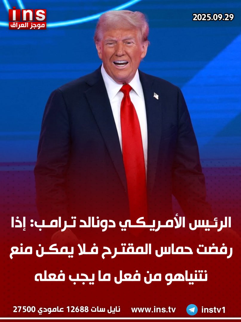 الرئيسيةالأخبارالرئيس الأمريكي دونالد ترامب: إذا رفضت حماس المقترح فلا يمكن منع نتنياهو... الأخبار الرئيس الأمريكي دونالد ترامب: إذا رفضت حماس المقترح فلا يمكن منع نتنياهو من فعل ما يجب فعله 0 59 سبتمبر 29, 2025 كتب بواسطة موجز العراق ins شارك FacebookTwitterPinterestWhatsAppTelegramViberCopy URL شارك FacebookTwitterPinterestWhatsAppTelegramViberCopy URL مقالات ذات صلة الأخبار الدكتور اسماعيل مصبح الوائلي: عقد استثمار مطار بغداد الدولي للثلاثي نمير العقابي وفائق زيدان وناصر عبد الحسين شعبان، مقابل تبرئة محمد شياع السوداني قضائياً... نوفمبر 6, 2025 الأخبار صحيفة إسرائيل هيوم: علي خامنئي سيكون أحد الأهداف الرئيسية للهجمات الإسرائيلية في حال اندلاع حرب جديدة مع إيران نوفمبر 6, 2025 الأخبار مجلس الشيوخ الأسترالي يدرج الحرس الثوري الإيراني بقوائم الإرهاب نوفمبر 6, 2025
