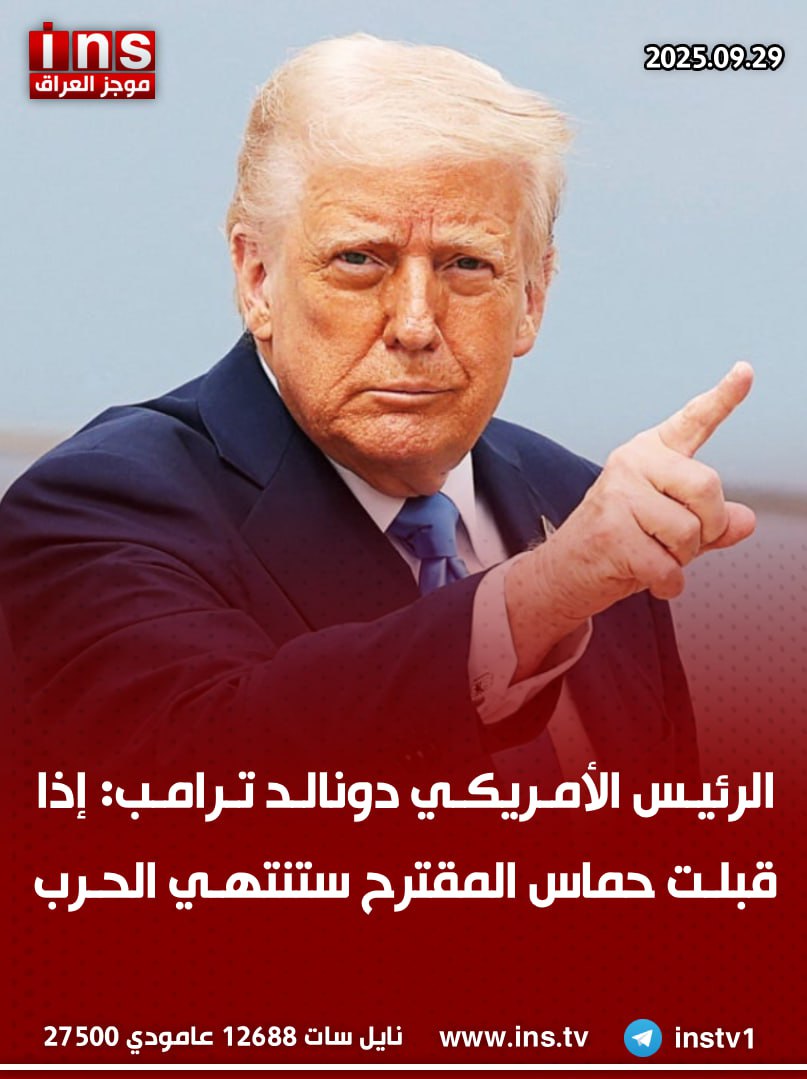 الرئيسيةالأخبارالرئيس الأمريكي دونالد ترامب: إذا قبلت حماس المقترح ستنتهي الحرب الأخبار الرئيس الأمريكي دونالد ترامب: إذا قبلت حماس المقترح ستنتهي الحرب 0 45 سبتمبر 29, 2025 كتب بواسطة موجز العراق ins شارك FacebookTwitterPinterestWhatsAppTelegramViberCopy URL شارك FacebookTwitterPinterestWhatsAppTelegramViberCopy URL مقالات ذات صلة الأخبار الدكتور اسماعيل مصبح الوائلي: عقد استثمار مطار بغداد الدولي للثلاثي نمير العقابي وفائق زيدان وناصر عبد الحسين شعبان، مقابل تبرئة محمد شياع السوداني قضائياً... نوفمبر 6, 2025 الأخبار صحيفة إسرائيل هيوم: علي خامنئي سيكون أحد الأهداف الرئيسية للهجمات الإسرائيلية في حال اندلاع حرب جديدة مع إيران نوفمبر 6, 2025 الأخبار مجلس الشيوخ الأسترالي يدرج الحرس الثوري الإيراني بقوائم الإرهاب نوفمبر 6, 2025