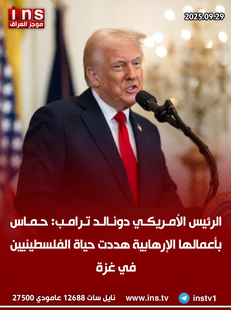 الرئيسيةالأخبارالرئيس الأمريكي دونالد ترامب: حماس بأعمالها الإرهابية هددت حياة الفلسطينيين في غزة الأخبار الرئيس الأمريكي دونالد ترامب: حماس بأعمالها الإرهابية هددت حياة الفلسطينيين في غزة 0 80 سبتمبر 29, 2025 كتب بواسطة موجز العراق ins شارك FacebookTwitterPinterestWhatsAppTelegramViberCopy URL شارك FacebookTwitterPinterestWhatsAppTelegramViberCopy URL مقالات ذات صلة الأخبار الدكتور اسماعيل مصبح الوائلي: عقد استثمار مطار بغداد الدولي للثلاثي نمير العقابي وفائق زيدان وناصر عبد الحسين شعبان، مقابل تبرئة محمد شياع السوداني قضائياً... نوفمبر 6, 2025 الأخبار صحيفة إسرائيل هيوم: علي خامنئي سيكون أحد الأهداف الرئيسية للهجمات الإسرائيلية في حال اندلاع حرب جديدة مع إيران نوفمبر 6, 2025 الأخبار مجلس الشيوخ الأسترالي يدرج الحرس الثوري الإيراني بقوائم الإرهاب نوفمبر 6, 2025