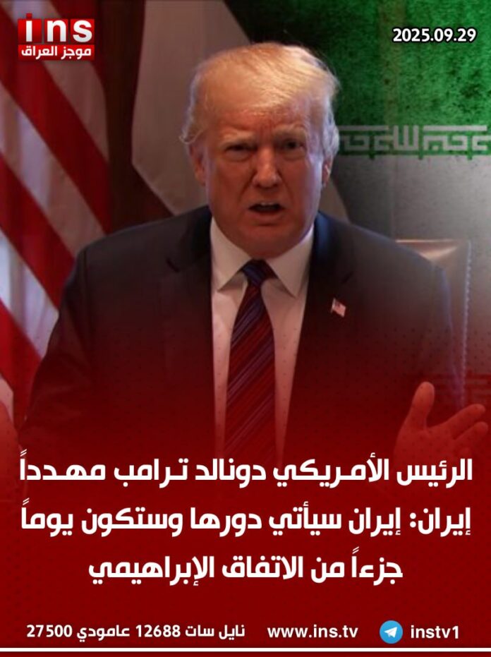 الرئيسيةالأخبارالرئيس الأمريكي دونالد ترامب مهدداً إيران: إيران سيأتي دورها وستكون يوماً جزءاً... الأخبار الرئيس الأمريكي دونالد ترامب مهدداً إيران: إيران سيأتي دورها وستكون يوماً جزءاً من الاتفاق الإبراهيمي 0 60 سبتمبر 29, 2025 كتب بواسطة موجز العراق ins شارك FacebookTwitterPinterestWhatsAppTelegramViberCopy URL شارك FacebookTwitterPinterestWhatsAppTelegramViberCopy URL مقالات ذات صلة الأخبار الدنمارك تعتقل أفغانياً بتهمة التجسس لصالح إيران والتخطيط لاستهداف مؤسسات يهودية في ألمانيا نوفمبر 5, 2025 الأخبار المدير العام للوكالة الدولية للطاقة الذرية رافائيل غروسي: إيران على حافة مواجهة جديدة مع الغرب إن لم تستأنف تعاونها النووي نوفمبر 5, 2025 الأخبار الباحث في مركز القدس للشؤون الخارجية والأمنية “يوني بن مناحيم”: هناك ضوء أخضر مبدئي من الإدارة الأمريكية لإسرائيل للتحرك عسكرياً ضد حزب الله يتعلق... نوفمبر 5, 2025