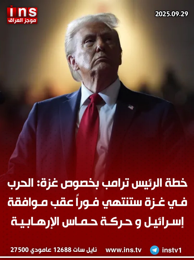 الرئيسيةالأخبارخطة الرئيس ترامب بخصوص غزة: الحرب في غزة ستنتهي فوراً عقب موافقة... الأخبار خطة الرئيس ترامب بخصوص غزة: الحرب في غزة ستنتهي فوراً عقب موافقة إسرائيل و حركة حماس الإرهابية 0 30 سبتمبر 29, 2025 كتب بواسطة موجز العراق ins شارك FacebookTwitterPinterestWhatsAppTelegramViberCopy URL شارك FacebookTwitterPinterestWhatsAppTelegramViberCopy URL مقالات ذات صلة الأخبار الدكتور اسماعيل مصبح الوائلي: عقد استثمار مطار بغداد الدولي للثلاثي نمير العقابي وفائق زيدان وناصر عبد الحسين شعبان، مقابل تبرئة محمد شياع السوداني قضائياً... نوفمبر 6, 2025 الأخبار صحيفة إسرائيل هيوم: علي خامنئي سيكون أحد الأهداف الرئيسية للهجمات الإسرائيلية في حال اندلاع حرب جديدة مع إيران نوفمبر 6, 2025 الأخبار مجلس الشيوخ الأسترالي يدرج الحرس الثوري الإيراني بقوائم الإرهاب نوفمبر 6, 2025