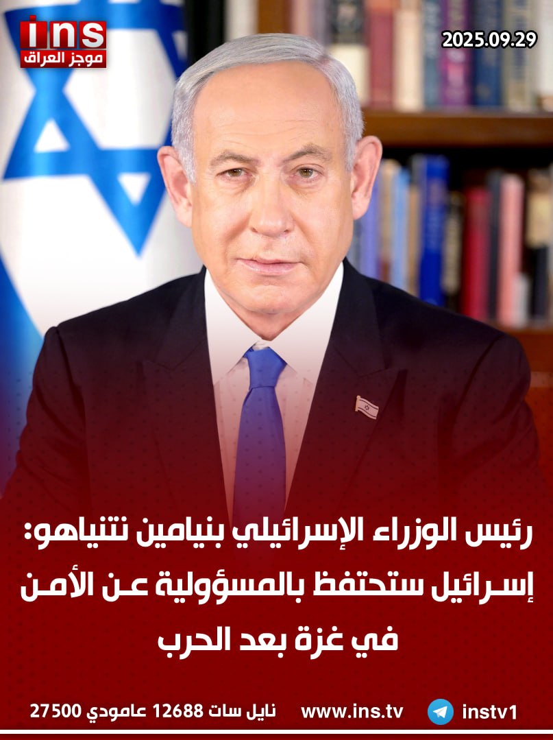 الرئيسيةالأخباررئيس الوزراء الإسرائيلي بنيامين نتنياهو: إسرائيل ستحتفظ بالمسؤولية عن الأمن في غزة... الأخبار رئيس الوزراء الإسرائيلي بنيامين نتنياهو: إسرائيل ستحتفظ بالمسؤولية عن الأمن في غزة بعد الحرب 0 58 سبتمبر 29, 2025 كتب بواسطة موجز العراق ins شارك FacebookTwitterPinterestWhatsAppTelegramViberCopy URL شارك FacebookTwitterPinterestWhatsAppTelegramViberCopy URL مقالات ذات صلة الأخبار الدنمارك تعتقل أفغانياً بتهمة التجسس لصالح إيران والتخطيط لاستهداف مؤسسات يهودية في ألمانيا نوفمبر 5, 2025 الأخبار المدير العام للوكالة الدولية للطاقة الذرية رافائيل غروسي: إيران على حافة مواجهة جديدة مع الغرب إن لم تستأنف تعاونها النووي نوفمبر 5, 2025 الأخبار الباحث في مركز القدس للشؤون الخارجية والأمنية “يوني بن مناحيم”: هناك ضوء أخضر مبدئي من الإدارة الأمريكية لإسرائيل للتحرك عسكرياً ضد حزب الله يتعلق... نوفمبر 5, 2025