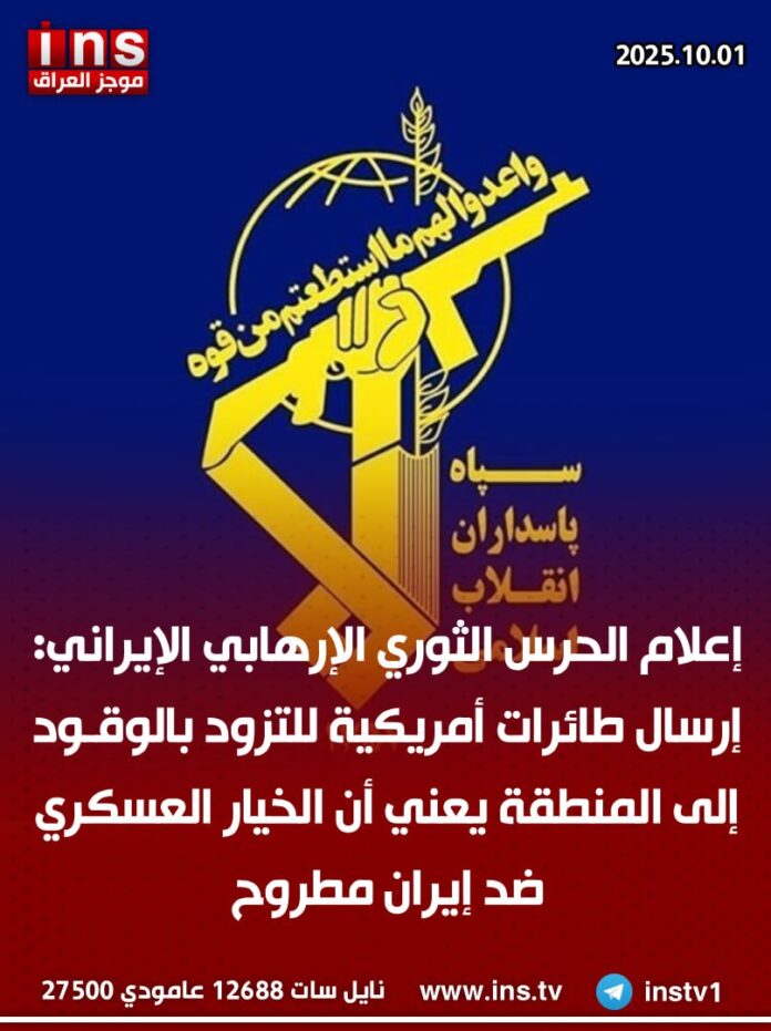الرئيسيةالأخبارإعلام الحرس الثوري الإرهابي الإيراني: إرسال طائرات أمريكية للتزود بالوقود إلى المنطقة... الأخبار إعلام الحرس الثوري الإرهابي الإيراني: إرسال طائرات أمريكية للتزود بالوقود إلى المنطقة يعني أن الخيار العسكري ضد إيران مطروح 0 64 سبتمبر 30, 2025 كتب بواسطة موجز العراق ins شارك FacebookTwitterPinterestWhatsAppTelegramViberCopy URL شارك FacebookTwitterPinterestWhatsAppTelegramViberCopy URL مقالات ذات صلة الأخبار الدنمارك تعتقل أفغانياً بتهمة التجسس لصالح إيران والتخطيط لاستهداف مؤسسات يهودية في ألمانيا نوفمبر 5, 2025 الأخبار المدير العام للوكالة الدولية للطاقة الذرية رافائيل غروسي: إيران على حافة مواجهة جديدة مع الغرب إن لم تستأنف تعاونها النووي نوفمبر 5, 2025 الأخبار الباحث في مركز القدس للشؤون الخارجية والأمنية “يوني بن مناحيم”: هناك ضوء أخضر مبدئي من الإدارة الأمريكية لإسرائيل للتحرك عسكرياً ضد حزب الله يتعلق... نوفمبر 5, 2025