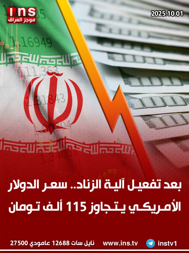 الرئيسيةالأخباربعد تفعيل آلية الزناد.. سعر الدولار الأمريكي يتجاوز 115 ألف تومان إيراني الأخبار بعد تفعيل آلية الزناد.. سعر الدولار الأمريكي يتجاوز 115 ألف تومان إيراني 0 64 أكتوبر 1, 2025 كتب بواسطة موجز العراق ins شارك FacebookTwitterPinterestWhatsAppTelegramViberCopy URL شارك FacebookTwitterPinterestWhatsAppTelegramViberCopy URL مقالات ذات صلة الأخبار الدنمارك تعتقل أفغانياً بتهمة التجسس لصالح إيران والتخطيط لاستهداف مؤسسات يهودية في ألمانيا نوفمبر 5, 2025 الأخبار المدير العام للوكالة الدولية للطاقة الذرية رافائيل غروسي: إيران على حافة مواجهة جديدة مع الغرب إن لم تستأنف تعاونها النووي نوفمبر 5, 2025 الأخبار الباحث في مركز القدس للشؤون الخارجية والأمنية “يوني بن مناحيم”: هناك ضوء أخضر مبدئي من الإدارة الأمريكية لإسرائيل للتحرك عسكرياً ضد حزب الله يتعلق... نوفمبر 5, 2025