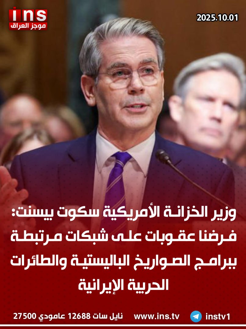 الرئيسيةالأخباروزير الخزانة الأمريكية سكوت بيسنت: فرضنا عقوبات على شبكات مرتبطة ببرامج الصواريخ... الأخبار وزير الخزانة الأمريكية سكوت بيسنت: فرضنا عقوبات على شبكات مرتبطة ببرامج الصواريخ الباليستية والطائرات الحربية الإيرانية 0 69 أكتوبر 1, 2025 كتب بواسطة موجز العراق ins شارك FacebookTwitterPinterestWhatsAppTelegramViberCopy URL شارك FacebookTwitterPinterestWhatsAppTelegramViberCopy URL مقالات ذات صلة الأخبار الدنمارك تعتقل أفغانياً بتهمة التجسس لصالح إيران والتخطيط لاستهداف مؤسسات يهودية في ألمانيا نوفمبر 5, 2025 الأخبار المدير العام للوكالة الدولية للطاقة الذرية رافائيل غروسي: إيران على حافة مواجهة جديدة مع الغرب إن لم تستأنف تعاونها النووي نوفمبر 5, 2025 الأخبار الباحث في مركز القدس للشؤون الخارجية والأمنية “يوني بن مناحيم”: هناك ضوء أخضر مبدئي من الإدارة الأمريكية لإسرائيل للتحرك عسكرياً ضد حزب الله يتعلق... نوفمبر 5, 2025