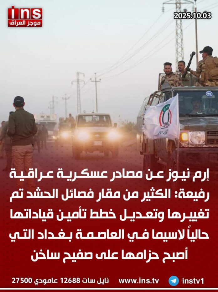 الرئيسيةالأخبارإرم نيوز عن مصادر عسكرية عراقية رفيعة: الكثير من مقار فصائل الحشد... الأخبار إرم نيوز عن مصادر عسكرية عراقية رفيعة: الكثير من مقار فصائل الحشد تم تغييرها وتعديل خطط تأمين قياداتها حالياً لاسيما في العاصمة بغداد التي أصبح حزامها على صفيح ساخن 0 40 أكتوبر 2, 2025 كتب بواسطة موجز العراق ins شارك FacebookTwitterPinterestWhatsAppTelegramViberCopy URL شارك FacebookTwitterPinterestWhatsAppTelegramViberCopy URL مقالات ذات صلة الأخبار الدنمارك تعتقل أفغانياً بتهمة التجسس لصالح إيران والتخطيط لاستهداف مؤسسات يهودية في ألمانيا نوفمبر 5, 2025 الأخبار المدير العام للوكالة الدولية للطاقة الذرية رافائيل غروسي: إيران على حافة مواجهة جديدة مع الغرب إن لم تستأنف تعاونها النووي نوفمبر 5, 2025 الأخبار الباحث في مركز القدس للشؤون الخارجية والأمنية “يوني بن مناحيم”: هناك ضوء أخضر مبدئي من الإدارة الأمريكية لإسرائيل للتحرك عسكرياً ضد حزب الله يتعلق... نوفمبر 5, 2025