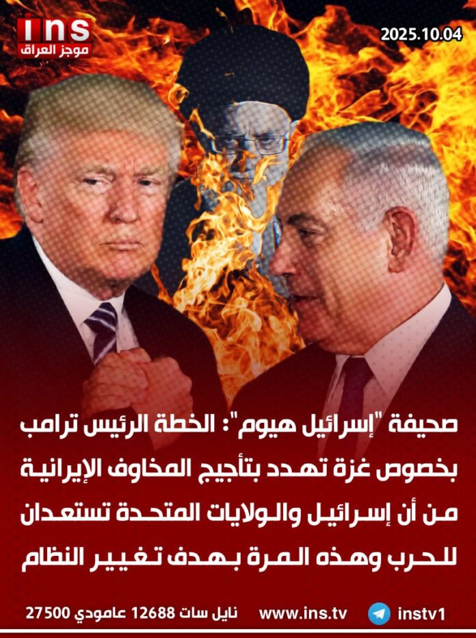 صحيفة “إسرائيل هيوم”: الخطة الرئيس ترامب بخصوص غزة تهدد بتأجيج المخاوف الإيرانية من أن إسرائيل والولايات المتحدة تستعدان للحرب وهذه المرة بهدف تغيير النظام