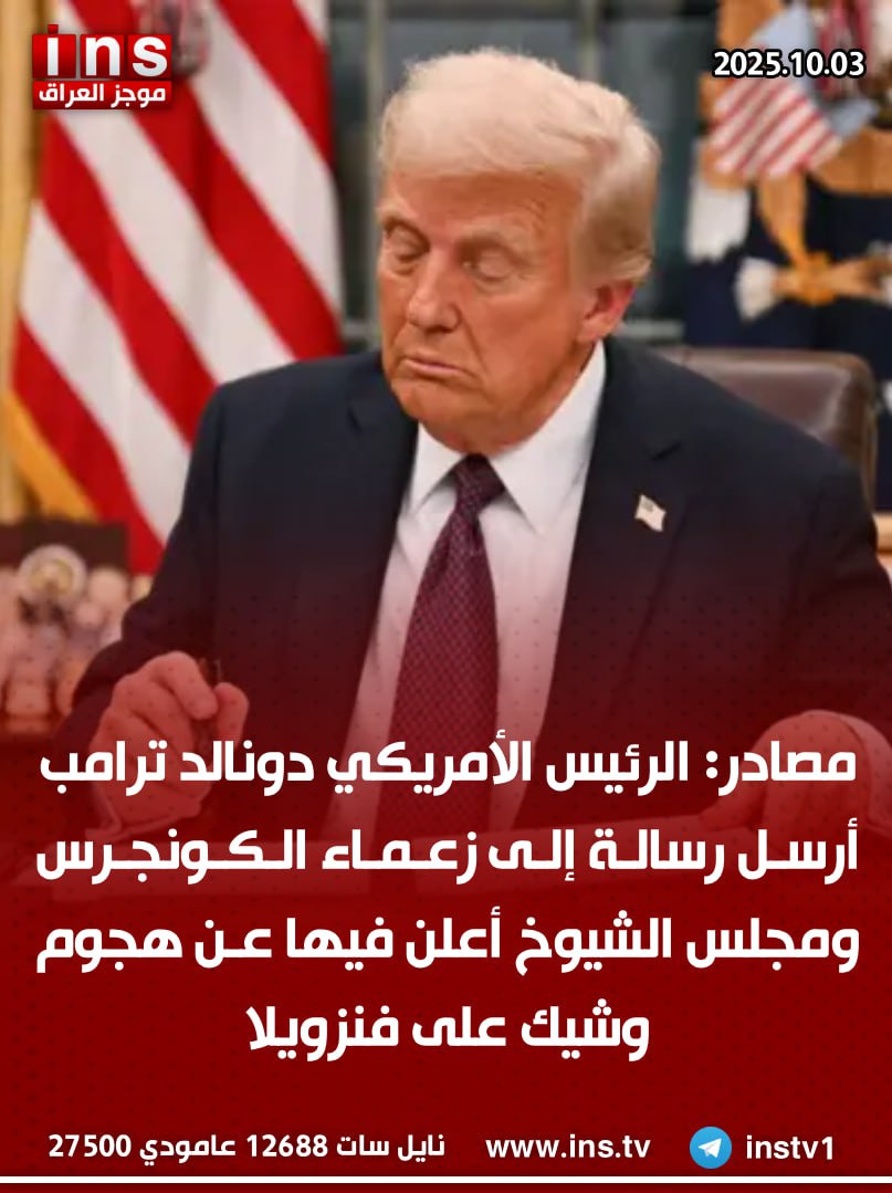 الرئيسيةالأخبارمصادر: الرئيس الأمريكي دونالد ترامب أرسل رسالة إلى زعماء الكونجرس ومجلس الشيوخ... الأخبار مصادر: الرئيس الأمريكي دونالد ترامب أرسل رسالة إلى زعماء الكونجرس ومجلس الشيوخ أعلن فيها عن هجوم وشيك على فنزويلا 0 43 أكتوبر 3, 2025 كتب بواسطة موجز العراق ins شارك FacebookTwitterPinterestWhatsAppTelegramViberCopy URL شارك FacebookTwitterPinterestWhatsAppTelegramViberCopy URL مقالات ذات صلة الأخبار المدير العام للوكالة الدولية للطاقة الذرية رافائيل غروسي: إيران على حافة مواجهة جديدة مع الغرب إن لم تستأنف تعاونها النووي نوفمبر 5, 2025 الأخبار الباحث في مركز القدس للشؤون الخارجية والأمنية “يوني بن مناحيم”: هناك ضوء أخضر مبدئي من الإدارة الأمريكية لإسرائيل للتحرك عسكرياً ضد حزب الله يتعلق... نوفمبر 5, 2025 الأخبار الباحث في مركز القدس للشؤون الخارجية والأمنية “يوني بن مناحيم”: حزب الله الإرهابي جددت تمويله وأسلحته والحكومة اللبنانية عاجزة عن تفكيكها نوفمبر 5, 2025