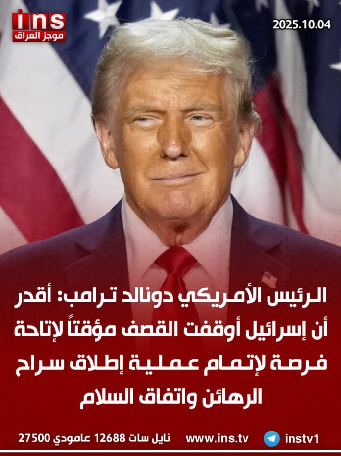 الرئيسيةالأخبارالرئيس الأمريكي دونالد ترامب: أقدر أن إسرائيل أوقفت القصف مؤقتاً لإتاحة فرصة... الأخبار الرئيس الأمريكي دونالد ترامب: أقدر أن إسرائيل أوقفت القصف مؤقتاً لإتاحة فرصة لإتمام عملية إطلاق سراح الرهائن واتفاق السلام 0 70 أكتوبر 4, 2025 كتب بواسطة موجز العراق ins شارك FacebookTwitterPinterestWhatsAppTelegramViberCopy URL شارك FacebookTwitterPinterestWhatsAppTelegramViberCopy URL مقالات ذات صلة الأخبار المدير العام للوكالة الدولية للطاقة الذرية رافائيل غروسي: إيران على حافة مواجهة جديدة مع الغرب إن لم تستأنف تعاونها النووي نوفمبر 5, 2025 الأخبار الباحث في مركز القدس للشؤون الخارجية والأمنية “يوني بن مناحيم”: هناك ضوء أخضر مبدئي من الإدارة الأمريكية لإسرائيل للتحرك عسكرياً ضد حزب الله يتعلق... نوفمبر 5, 2025 الأخبار الباحث في مركز القدس للشؤون الخارجية والأمنية “يوني بن مناحيم”: حزب الله الإرهابي جددت تمويله وأسلحته والحكومة اللبنانية عاجزة عن تفكيكها نوفمبر 5, 2025