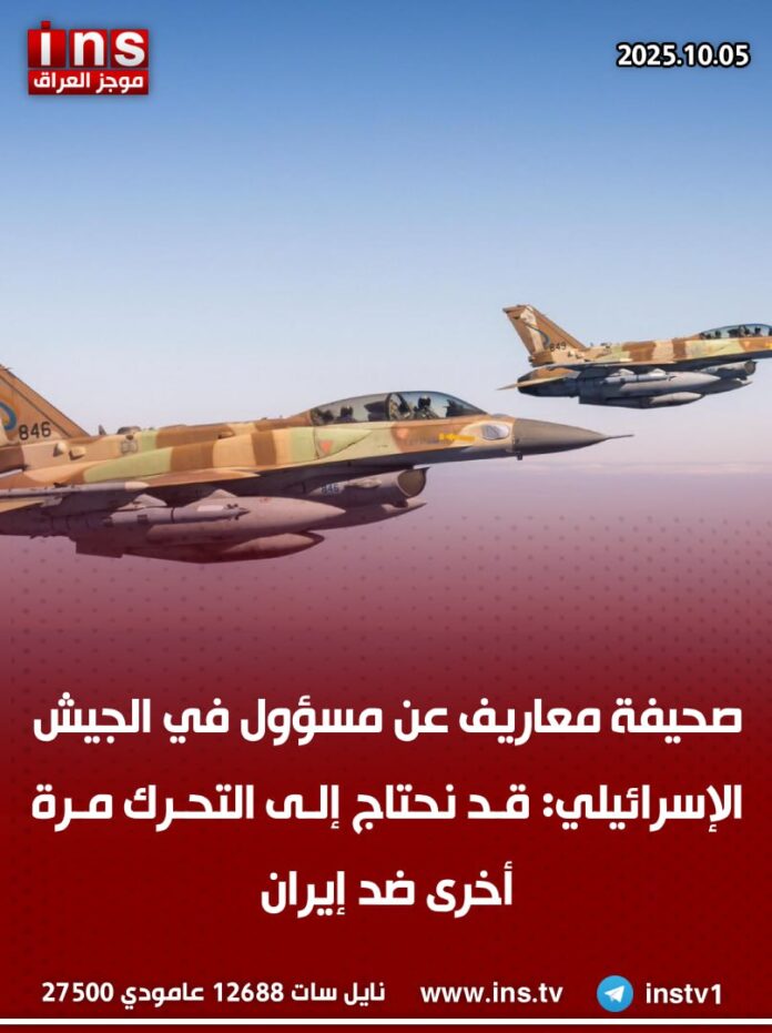 الرئيسيةالأخبارصحيفة معاريف عن مسؤول في الجيش الإسرائيلي: قد نحتاج إلى التحرك مرة... الأخبار صحيفة معاريف عن مسؤول في الجيش الإسرائيلي: قد نحتاج إلى التحرك مرة أخرى ضد إيران 0 42 أكتوبر 5, 2025 كتب بواسطة موجز العراق ins شارك FacebookTwitterPinterestWhatsAppTelegramViberCopy URL شارك FacebookTwitterPinterestWhatsAppTelegramViberCopy URL مقالات ذات صلة الأخبار غارة بطائرة مسيرة إسرائيلية تستهدف سيارة بالقرب من بلدة برج رحال جنوب لبنان نوفمبر 5, 2025 الأخبار قناة إيران الإخبارية عن مسؤولين عسكريين: علي خامنئي أذن بـ”مدى صاروخي غير محدود” حيث تنوي إيران تشغيل صواريخ باليستية عابرة للقارات يصل مداها إلى... نوفمبر 4, 2025 الأخبار وكيل وزارة الخزانة الأمريكية لشؤون الإرهاب والاستخبارات المالية “جون هيرلي”: رأس الوحش في طهران وأذرعه هي وكلائه الذين يغذون عدم الاستقرار والإرهاب نوفمبر 4, 2025