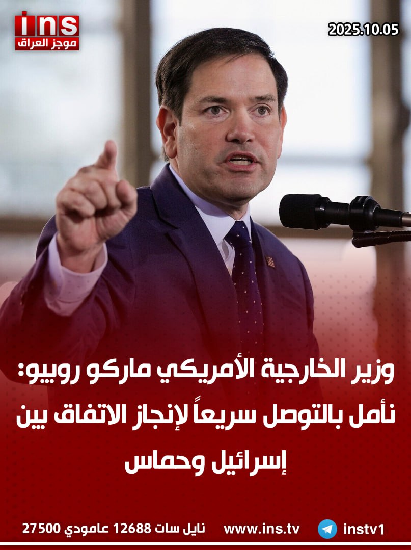 الرئيسيةالأخباروزير الخارجية الأمريكي ماركو روبيو: نأمل بالتوصل سريعاً لإنجاز الاتفاق بين إسرائيل... الأخبار وزير الخارجية الأمريكي ماركو روبيو: نأمل بالتوصل سريعاً لإنجاز الاتفاق بين إسرائيل وحماس 0 33 أكتوبر 5, 2025 كتب بواسطة موجز العراق ins شارك FacebookTwitterPinterestWhatsAppTelegramViberCopy URL شارك FacebookTwitterPinterestWhatsAppTelegramViberCopy URL مقالات ذات صلة الأخبار غارة بطائرة مسيرة إسرائيلية تستهدف سيارة بالقرب من بلدة برج رحال جنوب لبنان نوفمبر 5, 2025 الأخبار قناة إيران الإخبارية عن مسؤولين عسكريين: علي خامنئي أذن بـ”مدى صاروخي غير محدود” حيث تنوي إيران تشغيل صواريخ باليستية عابرة للقارات يصل مداها إلى... نوفمبر 4, 2025 الأخبار وكيل وزارة الخزانة الأمريكية لشؤون الإرهاب والاستخبارات المالية “جون هيرلي”: رأس الوحش في طهران وأذرعه هي وكلائه الذين يغذون عدم الاستقرار والإرهاب نوفمبر 4, 2025