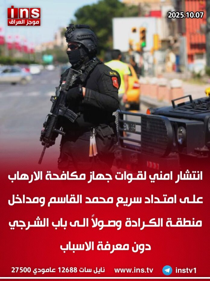الرئيسيةالأخبارانتشار امني لقوات جهاز مكافحة الارهاب على امتداد سريع محمد القاسم ومداخل... الأخبار انتشار امني لقوات جهاز مكافحة الارهاب على امتداد سريع محمد القاسم ومداخل منطقة الكرادة وصولاً الى باب الشرجي دون معرفة الاسباب 0 44 أكتوبر 7, 2025 كتب بواسطة موجز العراق ins شارك FacebookTwitterPinterestWhatsAppTelegramViberCopy URL شارك FacebookTwitterPinterestWhatsAppTelegramViberCopy URL مقالات ذات صلة الأخبار قناة إيران الإخبارية عن مسؤولين عسكريين: علي خامنئي أذن بـ”مدى صاروخي غير محدود” حيث تنوي إيران تشغيل صواريخ باليستية عابرة للقارات يصل مداها إلى... نوفمبر 4, 2025 الأخبار وكيل وزارة الخزانة الأمريكية لشؤون الإرهاب والاستخبارات المالية “جون هيرلي”: رأس الوحش في طهران وأذرعه هي وكلائه الذين يغذون عدم الاستقرار والإرهاب نوفمبر 4, 2025 الأخبار وكيل وزارة الخزانة الأمريكية لشؤون الإرهاب والاستخبارات المالية “جون هيرلي”: إيران هي في قلب عدم الاستقرار الإقليمي وهي وحش ذي الأذرع المتعددة نوفمبر 4, 2025