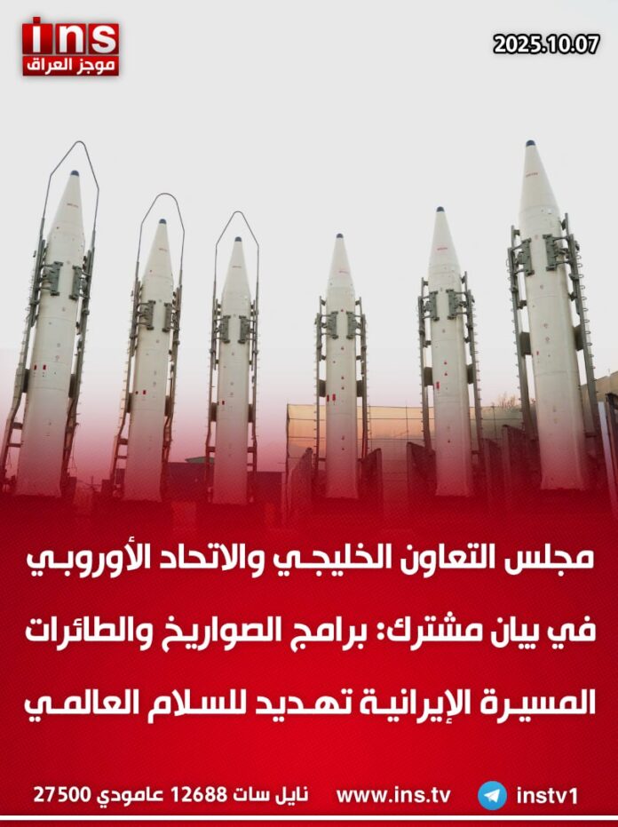 الرئيسيةالأخبارمجلس التعاون الخليجي والاتحاد الأوروبي في بيان مشترك: برامج الصواريخ والطائرات المسيرة... الأخبار مجلس التعاون الخليجي والاتحاد الأوروبي في بيان مشترك: برامج الصواريخ والطائرات المسيرة الإيرانية تهديد للسلام العالمي 0 43 أكتوبر 7, 2025 كتب بواسطة موجز العراق ins شارك FacebookTwitterPinterestWhatsAppTelegramViberCopy URL شارك FacebookTwitterPinterestWhatsAppTelegramViberCopy URL مقالات ذات صلة الأخبار قناة إيران الإخبارية عن مسؤولين عسكريين: علي خامنئي أذن بـ”مدى صاروخي غير محدود” حيث تنوي إيران تشغيل صواريخ باليستية عابرة للقارات يصل مداها إلى... نوفمبر 4, 2025 الأخبار وكيل وزارة الخزانة الأمريكية لشؤون الإرهاب والاستخبارات المالية “جون هيرلي”: رأس الوحش في طهران وأذرعه هي وكلائه الذين يغذون عدم الاستقرار والإرهاب نوفمبر 4, 2025 الأخبار وكيل وزارة الخزانة الأمريكية لشؤون الإرهاب والاستخبارات المالية “جون هيرلي”: إيران هي في قلب عدم الاستقرار الإقليمي وهي وحش ذي الأذرع المتعددة نوفمبر 4, 2025
