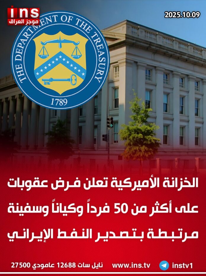 الرئيسيةالأخبارالخزانة الأميركية تعلن فرض عقوبات على أكثر من 50 فرداً وكياناً وسفينة... الأخبار الخزانة الأميركية تعلن فرض عقوبات على أكثر من 50 فرداً وكياناً وسفينة مرتبطة بتصدير النفط الإيراني 0 70 أكتوبر 9, 2025 كتب بواسطة موجز العراق ins شارك FacebookTwitterPinterestWhatsAppTelegramViberCopy URL شارك FacebookTwitterPinterestWhatsAppTelegramViberCopy URL مقالات ذات صلة الأخبار وكيل وزارة الخزانة الأمريكية لشؤون الإرهاب والاستخبارات المالية “جون هيرلي”: رأس الوحش في طهران وأذرعه هي وكلائه الذين يغذون عدم الاستقرار والإرهاب نوفمبر 4, 2025 الأخبار وكيل وزارة الخزانة الأمريكية لشؤون الإرهاب والاستخبارات المالية “جون هيرلي”: إيران هي في قلب عدم الاستقرار الإقليمي وهي وحش ذي الأذرع المتعددة نوفمبر 4, 2025 الأخبار قتيل بغارة إسرائيلية استهدفت سيارة على طريق كفردجال في جنوب لبنان نوفمبر 4, 2025