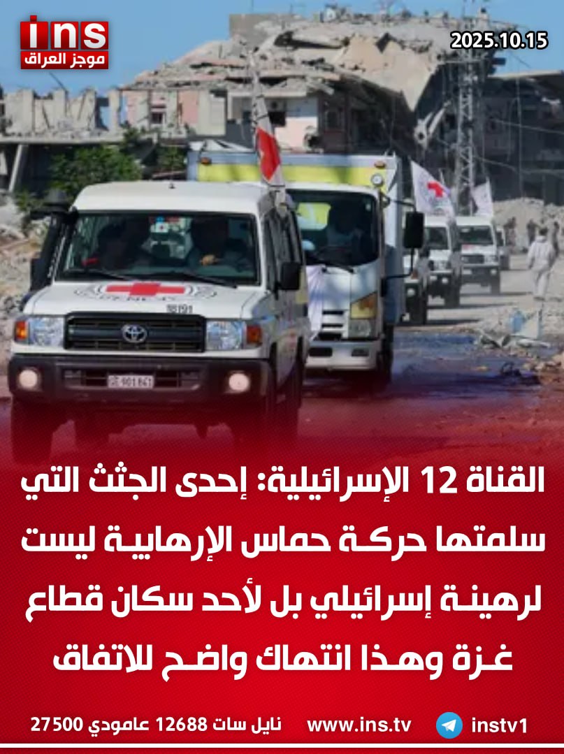 الرئيسيةالأخبارالقناة 12 الإسرائيلية: إحدى الجثث التي سلمتها حركة حماس الإرهابية ليست لرهينة... الأخبار القناة 12 الإسرائيلية: إحدى الجثث التي سلمتها حركة حماس الإرهابية ليست لرهينة إسرائيلي بل لأحد سكان قطاع غزة وهذا انتهاك واضح للاتفاق 0 26 أكتوبر 15, 2025 كتب بواسطة موجز العراق ins شارك FacebookTwitterPinterestWhatsAppTelegramViberCopy URL شارك FacebookTwitterPinterestWhatsAppTelegramViberCopy URL مقالات ذات صلة الأخبار غارات جوية إسرائيلية تستهدف اهداف تابعة لمنظمة حزب الله الإرهابية في النبطية جنوب لبنان نوفمبر 2, 2025 الأخبار وزيرة الخارجية البريطانية للحدث: نريد نزعاً كاملاً لسلاح حزب الله نوفمبر 2, 2025 الأخبار وزيرة الخارجية البريطانية للحدث: إيران لا زالت تشكل تهديدا مباشرا لأمننا القومي نوفمبر 2, 2025