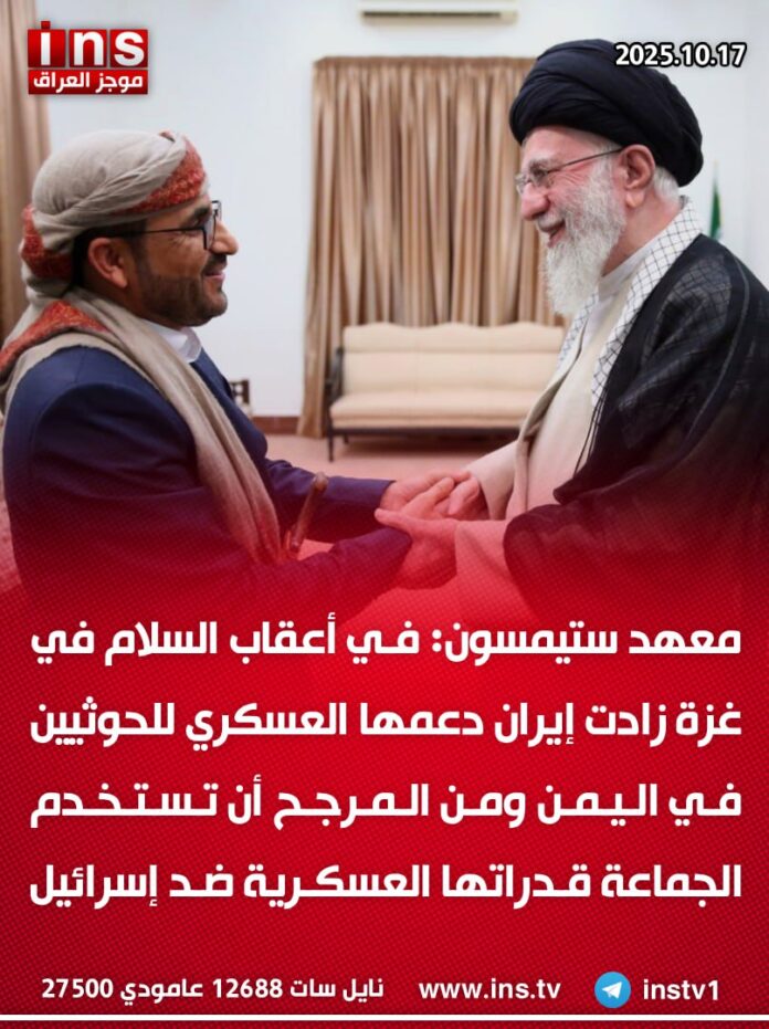 الرئيسيةالأخبارمعهد ستيمسون: في أعقاب السلام في غزة زادت إيران دعمها العسكري للحوثيين... الأخبار معهد ستيمسون: في أعقاب السلام في غزة زادت إيران دعمها العسكري للحوثيين في اليمن ومن المرجح أن تستخدم الجماعة قدراتها العسكرية ضد إسرائيل 0 32 أكتوبر 16, 2025 كتب بواسطة موجز العراق ins شارك FacebookTwitterPinterestWhatsAppTelegramViberCopy URL شارك FacebookTwitterPinterestWhatsAppTelegramViberCopy URL مقالات ذات صلة الأخبار رئيس الأركان الإسرائيلي إيال زامير: نعمل في جميع الساحات حتى الآن بجاهزية عالية وفي بعض الساحات سنعمل مرة أخرى بقوة أكبر مما عرفناه خلال... أكتوبر 31, 2025 الأخبار استهداف شركة بعبوة صوتية في حي المهندسين بمحافظة البصرة أكتوبر 31, 2025 الأخبار رئيس الوزراء الإسرائيلي بنيامين نتنياهو: إذا استمرت حركة حماس الإرهابية في انتهاك وقف إطلاق النار فسنستهدفها بضربات قوية أكتوبر 30, 2025