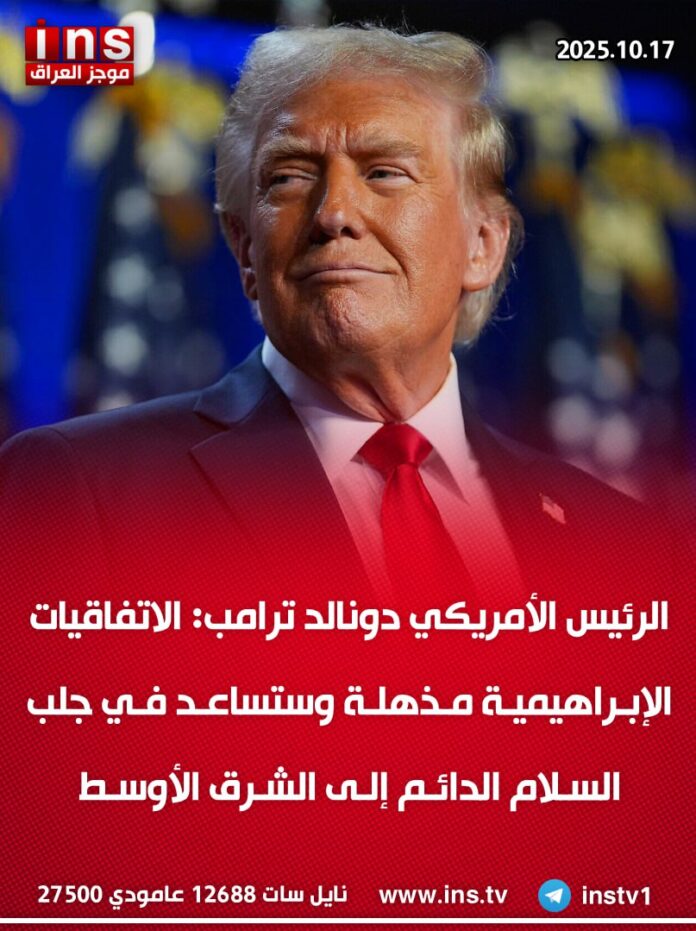الرئيسيةالأخبارالرئيس الأمريكي دونالد ترامب: الاتفاقيات الإبراهيمية مذهلة وستساعد في جلب السلام الدائم... الأخبار الرئيس الأمريكي دونالد ترامب: الاتفاقيات الإبراهيمية مذهلة وستساعد في جلب السلام الدائم إلى الشرق الأوسط 0 34 أكتوبر 17, 2025 كتب بواسطة موجز العراق ins شارك FacebookTwitterPinterestWhatsAppTelegramViberCopy URL شارك FacebookTwitterPinterestWhatsAppTelegramViberCopy URL مقالات ذات صلة الأخبار رئيس الوزراء الإسرائيلي بنيامين نتنياهو: إذا استمرت حركة حماس الإرهابية في انتهاك وقف إطلاق النار فسنستهدفها بضربات قوية أكتوبر 30, 2025 الأخبار الحكومة البريطانية تفرض عقوبات على المقرب من مجتبى خامنئي والحرس الثوري الإيراني علي أنصاري لتسهيله ودعمه أنشطة الحرس الثوري الإيراني العدائية ضد المملكة المتحدة... أكتوبر 30, 2025 الأخبار أكسيوس: الخطة الأميركية لنشر قوة دولية في غزة ستكون جاهزة خلال أسابيع أكتوبر 30, 2025