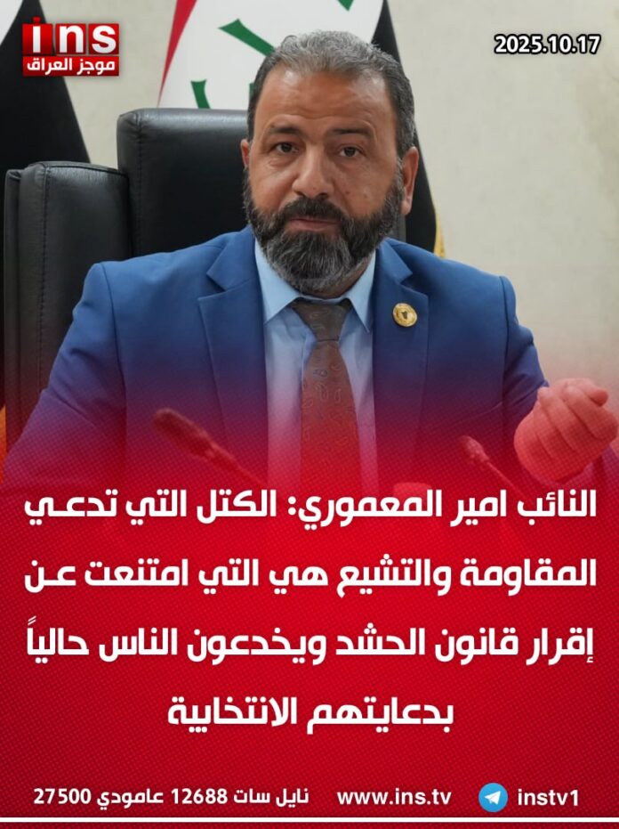 الرئيسيةالأخبارالنائب امير المعموري: الكتل التي تدعي المقاومة والتشيع هي التي امتنعت عن... الأخبار النائب امير المعموري: الكتل التي تدعي المقاومة والتشيع هي التي امتنعت عن إقرار قانون الحشد ويخدعون الناس حالياً بدعايتهم الانتخابية 0 42 أكتوبر 17, 2025 كتب بواسطة موجز العراق ins شارك FacebookTwitterPinterestWhatsAppTelegramViberCopy URL شارك FacebookTwitterPinterestWhatsAppTelegramViberCopy URL مقالات ذات صلة الأخبار رئيس الوزراء الإسرائيلي بنيامين نتنياهو: إذا استمرت حركة حماس الإرهابية في انتهاك وقف إطلاق النار فسنستهدفها بضربات قوية أكتوبر 30, 2025 الأخبار الحكومة البريطانية تفرض عقوبات على المقرب من مجتبى خامنئي والحرس الثوري الإيراني علي أنصاري لتسهيله ودعمه أنشطة الحرس الثوري الإيراني العدائية ضد المملكة المتحدة... أكتوبر 30, 2025 الأخبار أكسيوس: الخطة الأميركية لنشر قوة دولية في غزة ستكون جاهزة خلال أسابيع أكتوبر 30, 2025