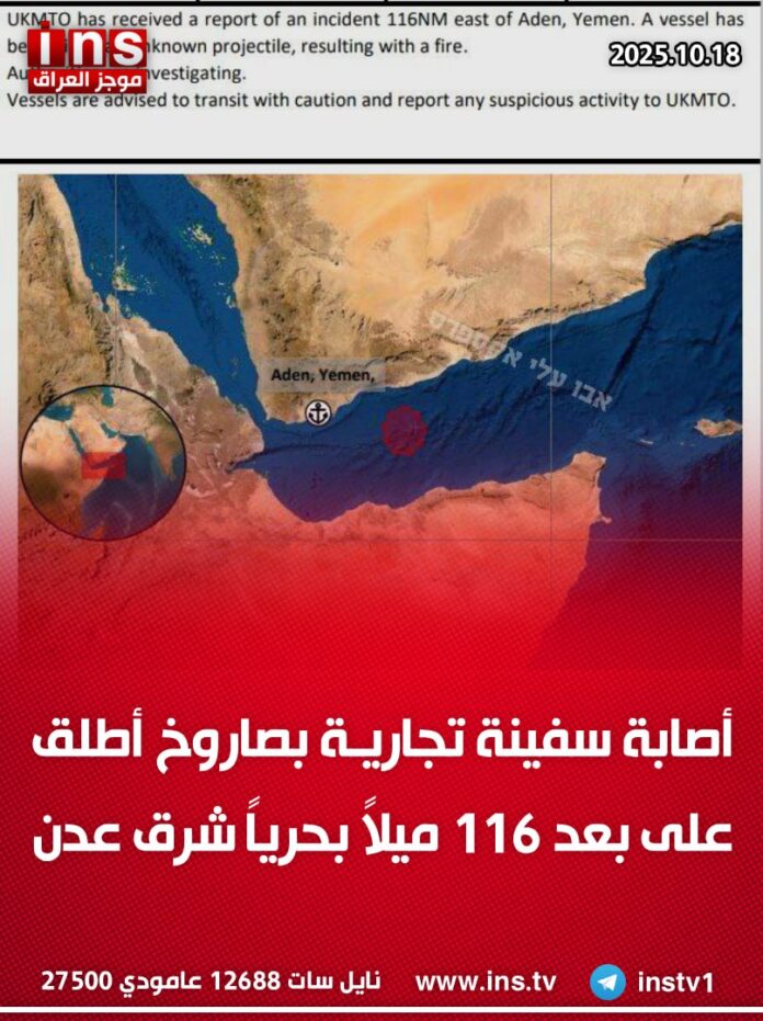 الرئيسيةالأخبارأصابة سفينة تجارية بصاروخ أطلق على بعد 116 ميلاً بحرياً شرق عدن الأخبار أصابة سفينة تجارية بصاروخ أطلق على بعد 116 ميلاً بحرياً شرق عدن 0 35 أكتوبر 18, 2025 كتب بواسطة موجز العراق ins شارك FacebookTwitterPinterestWhatsAppTelegramViberCopy URL شارك FacebookTwitterPinterestWhatsAppTelegramViberCopy URL مقالات ذات صلة الأخبار أكسيوس: الخطة الأميركية لنشر قوة دولية في غزة ستكون جاهزة خلال أسابيع أكتوبر 30, 2025 الأخبار الوكالة الدولية للطاقة الذرية: رصد نشاط بالقرب من مواقع مخزونات نووية في إيران أكتوبر 29, 2025 الأخبار المبعوثة الأمريكية إلى لبنان مورغان أورتاغوس: على الجيش اللبناني التنفيذ الكامل لقرار حصر السلاح بيد الدولة أكتوبر 29, 2025