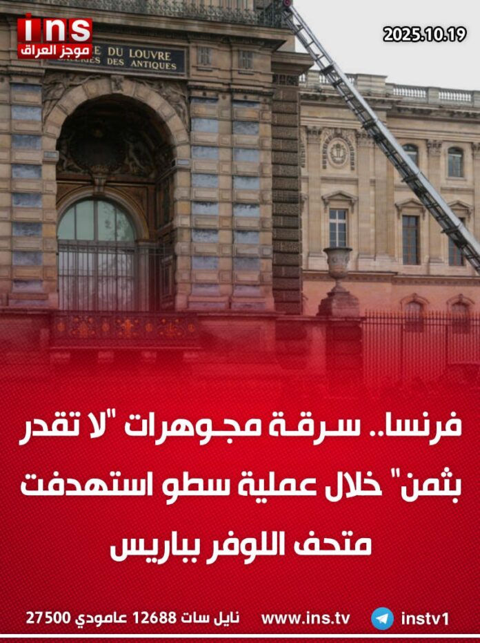 الرئيسيةالأخبارفرنسا.. سرقة مجوهرات "لا تقدر بثمن" خلال عملية سطو استهدفت متحف اللوفر... الأخبار فرنسا.. سرقة مجوهرات “لا تقدر بثمن” خلال عملية سطو استهدفت متحف اللوفر بباريس 0 27 أكتوبر 19, 2025 كتب بواسطة موجز العراق ins شارك FacebookTwitterPinterestWhatsAppTelegramViberCopy URL شارك FacebookTwitterPinterestWhatsAppTelegramViberCopy URL مقالات ذات صلة الأخبار الوكالة الدولية للطاقة الذرية: رصد نشاط بالقرب من مواقع مخزونات نووية في إيران أكتوبر 29, 2025 الأخبار المبعوثة الأمريكية إلى لبنان مورغان أورتاغوس: على الجيش اللبناني التنفيذ الكامل لقرار حصر السلاح بيد الدولة أكتوبر 29, 2025 الأخبار مجلة “ذا أتلانتك” الأمريكية: القرار الأخير لوزارة الخزانة الأمريكية بفرض عقوبات على شركة المهندس العامة واثنين من كبار رجال الأعمال العراقيين “عقيل مفتن وعلي... أكتوبر 29, 2025