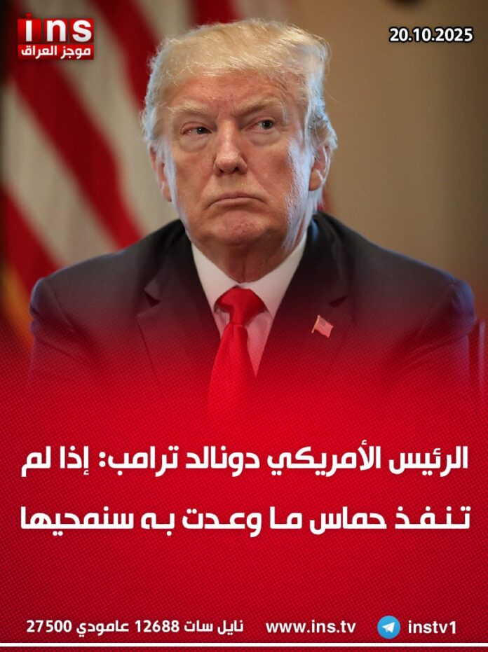 الرئيسيةالأخبارالرئيس الأمريكي دونالد ترامب: إذا لم تنفذ حماس ما وعدت به سنمحيها الأخبار الرئيس الأمريكي دونالد ترامب: إذا لم تنفذ حماس ما وعدت به سنمحيها 0 10 أكتوبر 20, 2025 كتب بواسطة موجز العراق ins شارك FacebookTwitterPinterestWhatsAppTelegramViberCopy URL شارك FacebookTwitterPinterestWhatsAppTelegramViberCopy URL مقالات ذات صلة الأخبار رئيس الأركان الإسرائيلي إيال زامير: المعركة لم تنته بعد وقد تشهد تطورات وعلينا أن نكون مستعدين لمختلف المتغيرات أكتوبر 21, 2025 الأخبار نائب الرئيس الأميركي جي دي فانس يصل إلى إسرائيل لدعم وقف إطلاق النار في غزة أكتوبر 21, 2025 الأخبار تحليق غير مسبوق لمسيرات إسرائيلية في أجواء بيروت وجبل لبنان والجنوب وفوق القصر الجمهوري أكتوبر 20, 2025